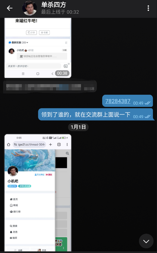 谢谢老哥网,感谢苏苏的888,今年第一天居然中大奖了,老哥网牛逼!!!!在交流群已经团了 祝老哥们也越来越好