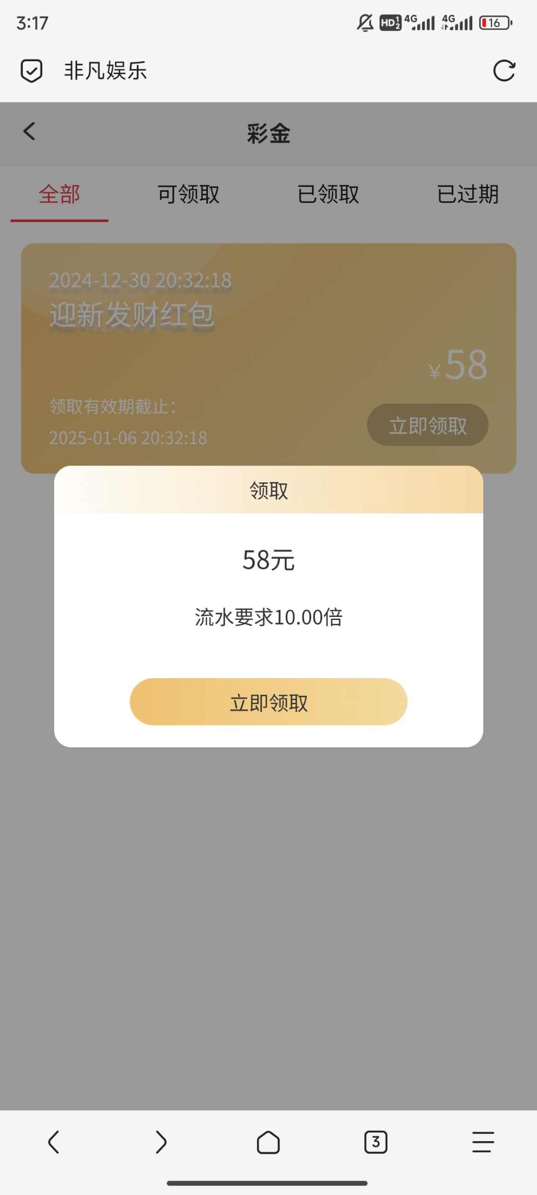 领了58下了400,之前输了500这里