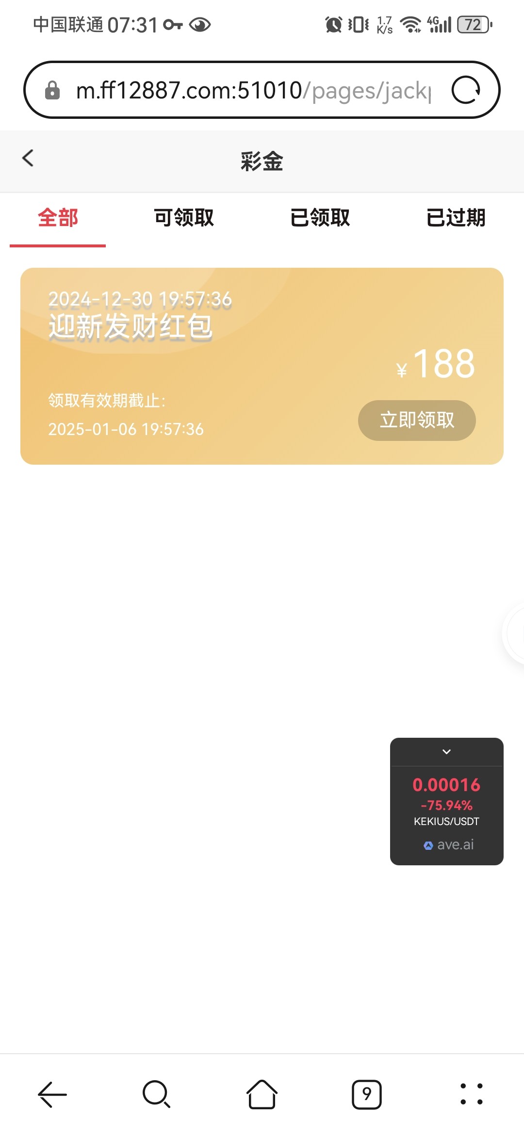 领了188分币没出