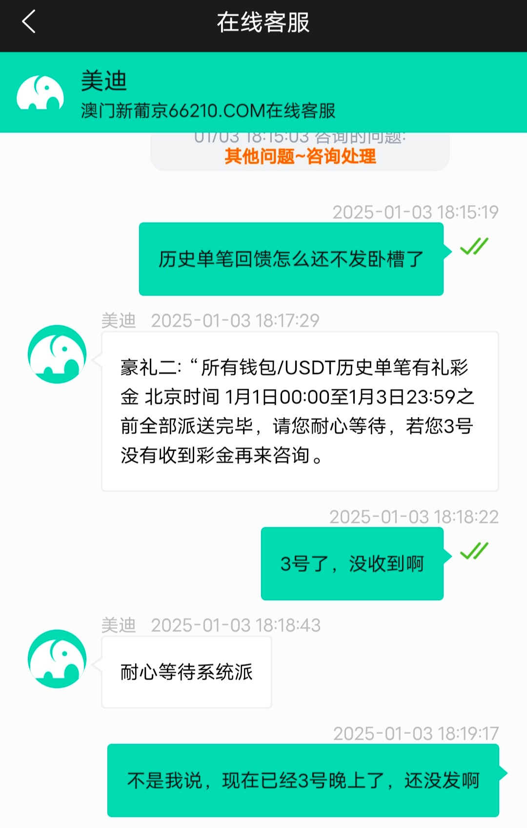 傻逼662不会再玩,下午说1到3号发,过了12点就说到5号,真出生大傻逼台,不会再玩。