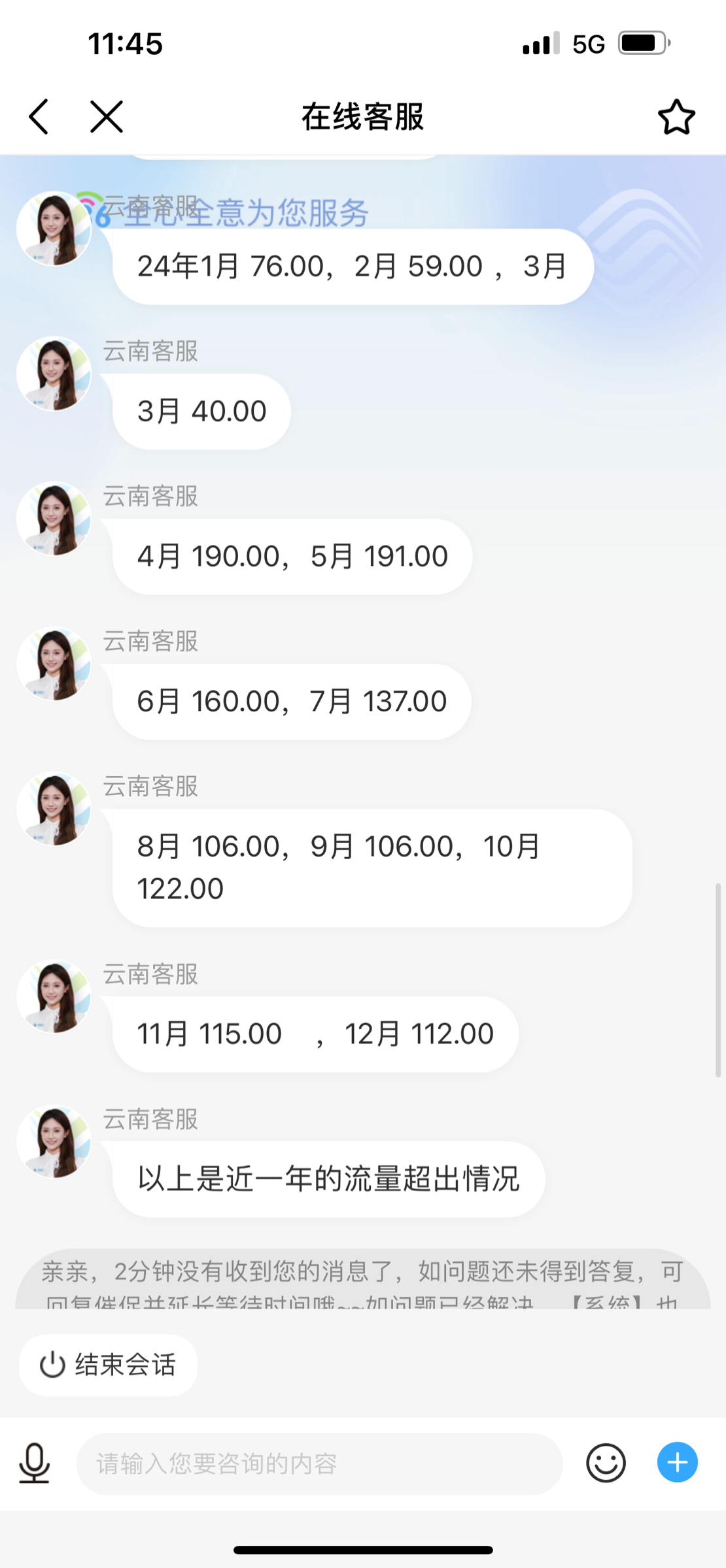 步骤-2线上人工客服-回复【查询一年的流量超出】