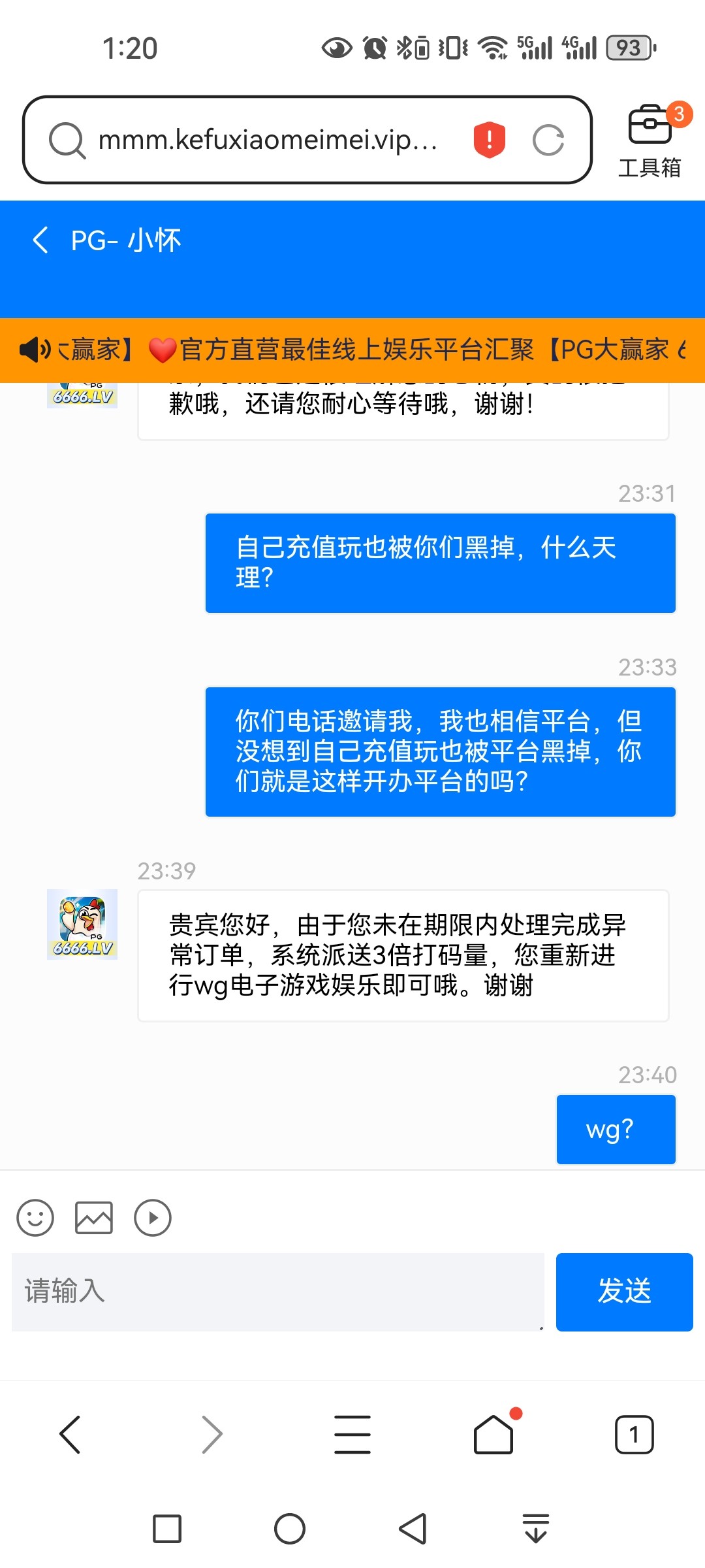 @神秘人必中发财牛 ,我跟你的一样,被扣掉了,我今天去找客服,又给我退回来了,要我去wg电子玩3倍水,这几把电子真垃圾,简直就是送钱,几乎所有的游戏都玩了,最后玩