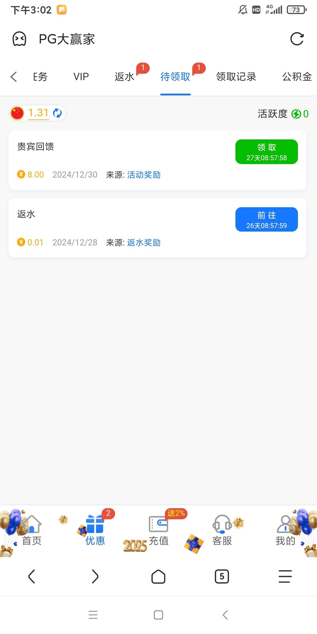 你这特么是月月充值回馈 碰个鸡毛啊?