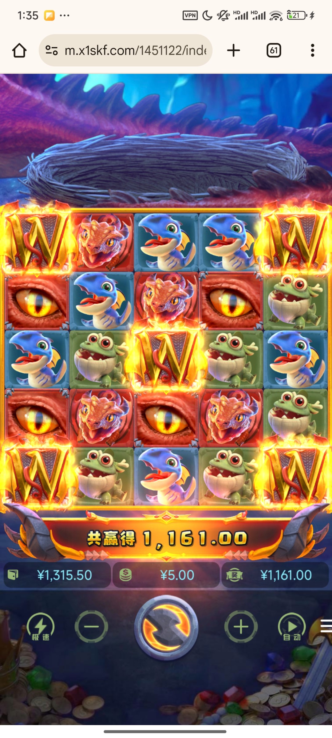 寻龙1的图标倍数很高 寻龙二主要吃30个跟80个 ,我一般小额打精彩模板 5毛一拉 不过我控制不住 经常上到二三百十块一注 十块十五的注不太好爆没本金不要尝试 0.5 1.5 2.5 5这几个注可以切着拉 一定不要贪 赚了一点就跑然后换台子继续今天yy21↑294 然后小蓝50+18博大 227充144 总共差不多赚了2700+