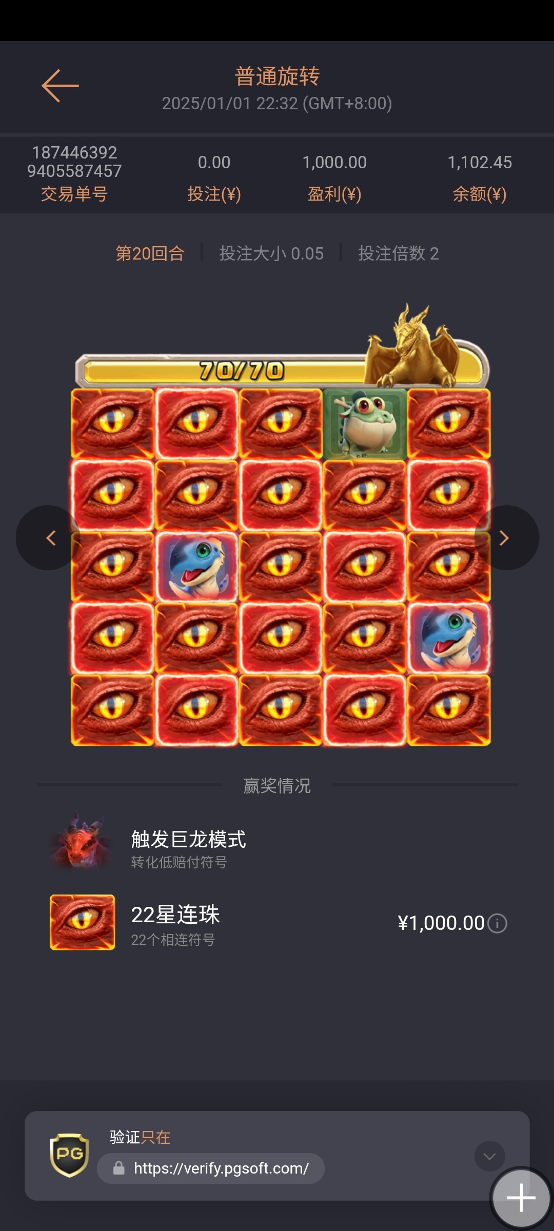 今年打了一年的寻龙, 之前一直死磕寻龙1 ,后面寻龙二出来了之后就一直玩一跟二, 我一般都是十几二十的冲进去, 五毛拉, 拉上八九十就改一块的注, 总体来说今年打寻龙还是赚的 。