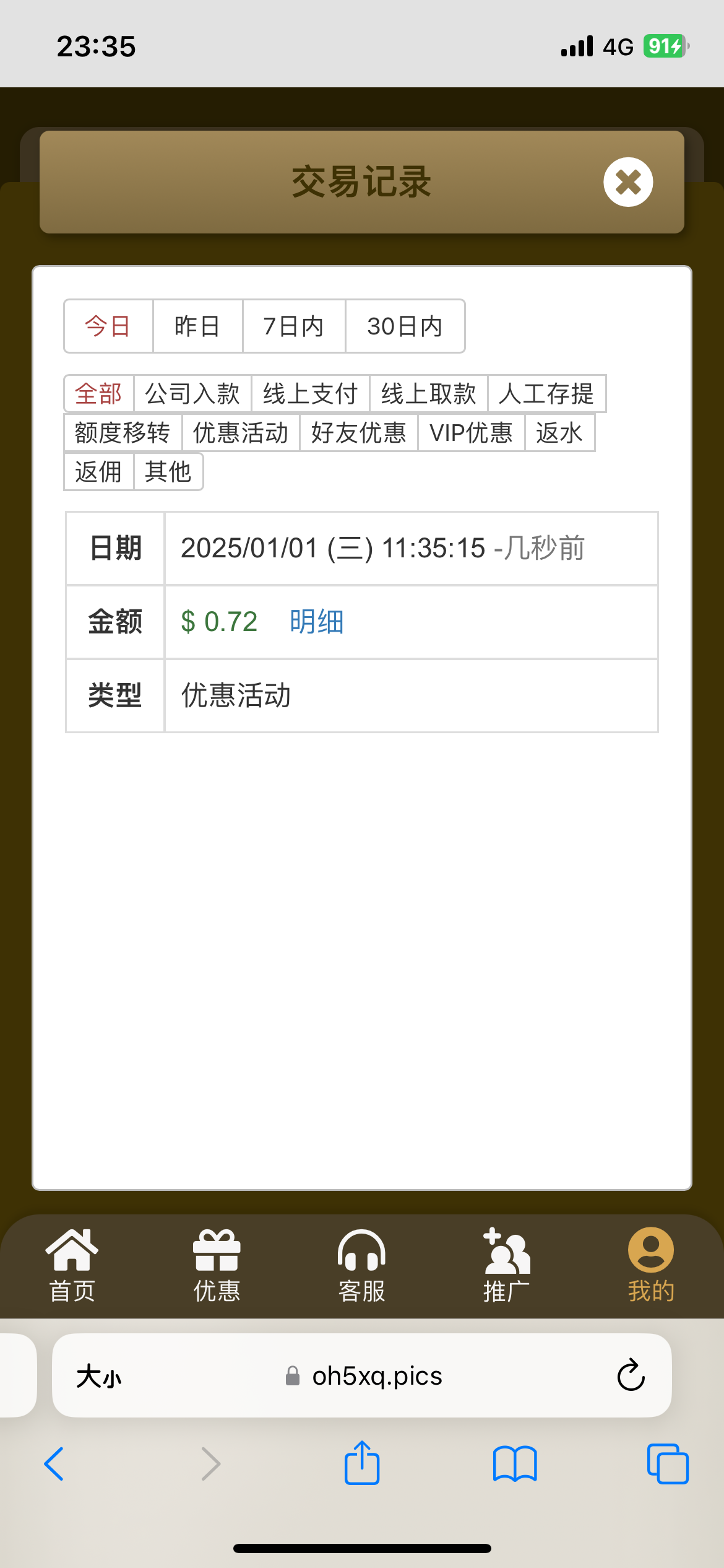 电话特邀首存说寸500送388 ,叫我等5分到账没到,我联系在线客服给25我服了。