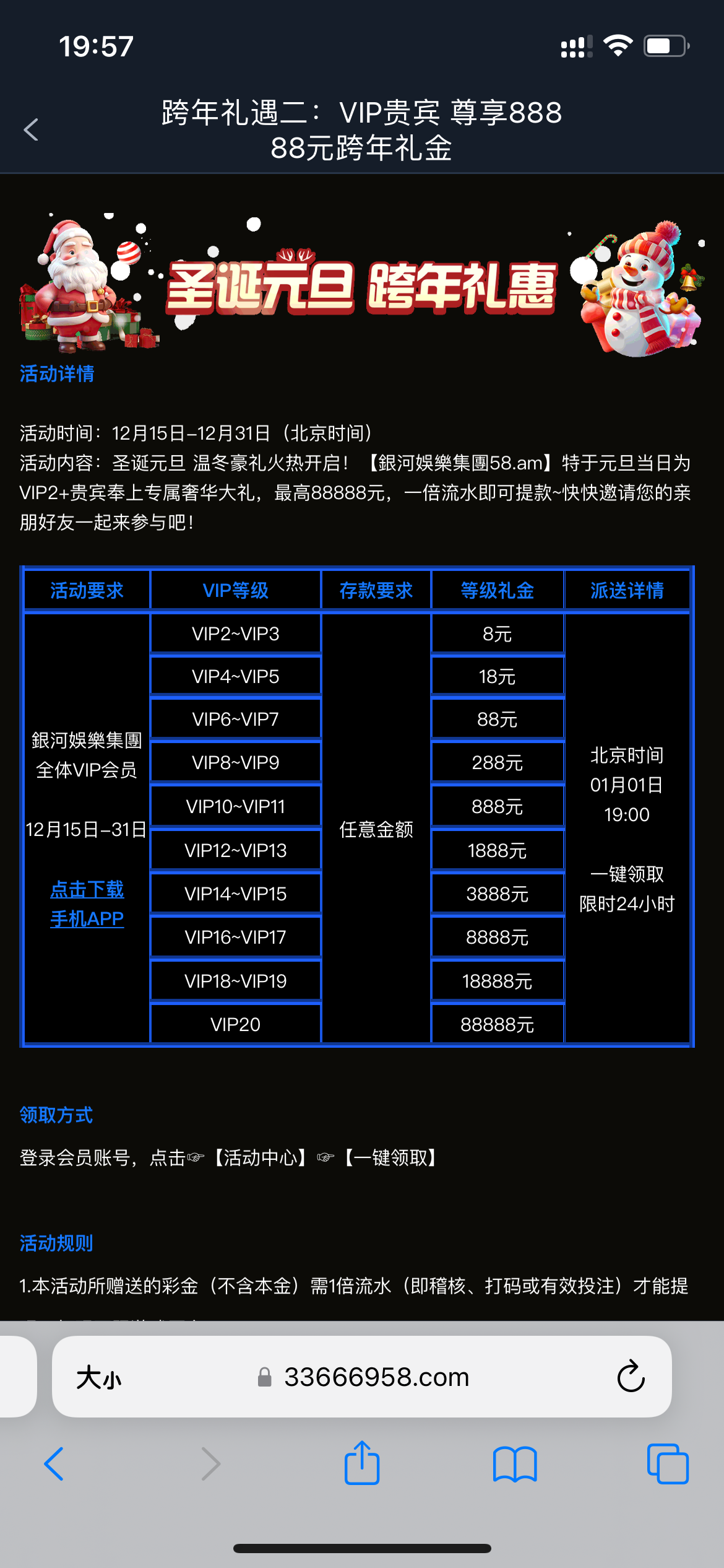 银河58 有等级去 元旦回馈