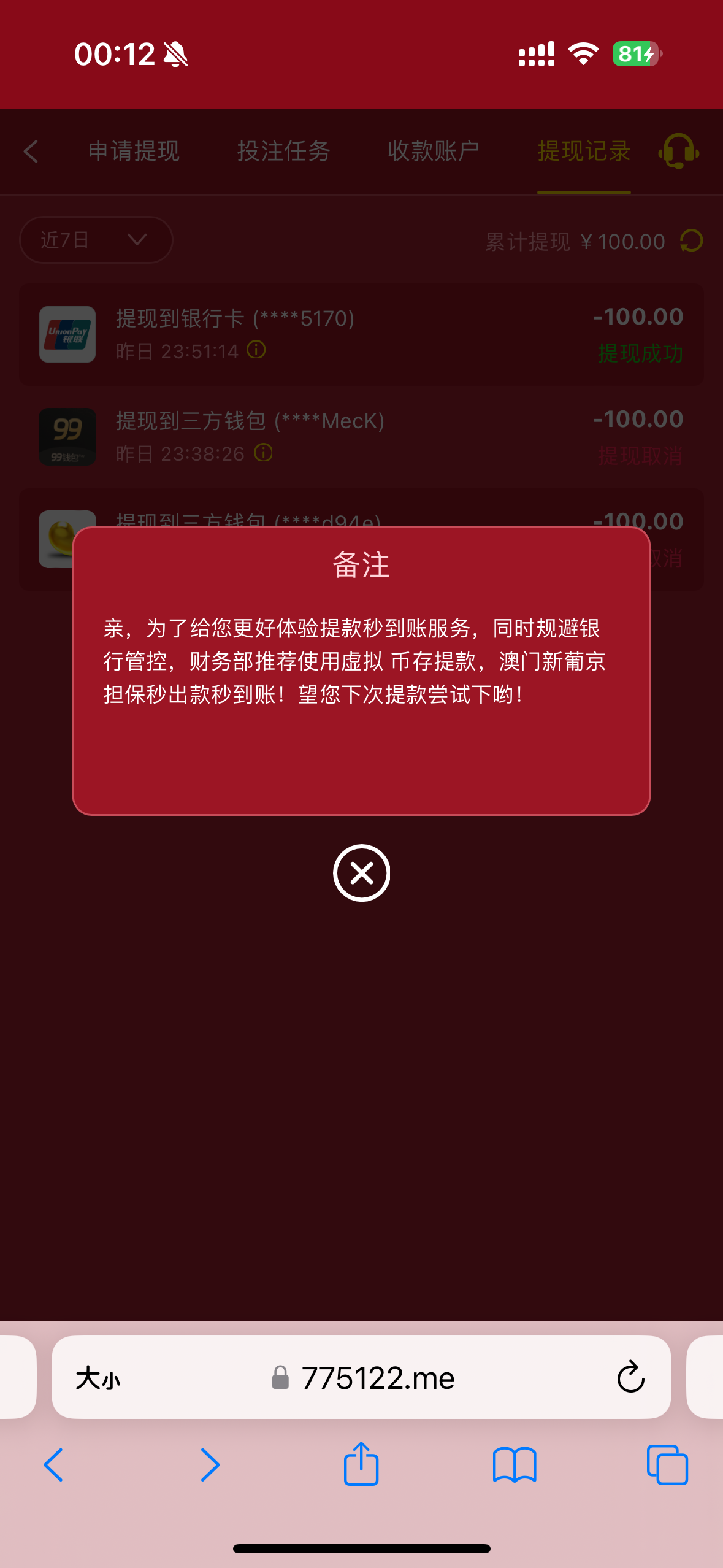 我刚刚另一个手机号码也收到短信了重新注册去申请12到账下了100