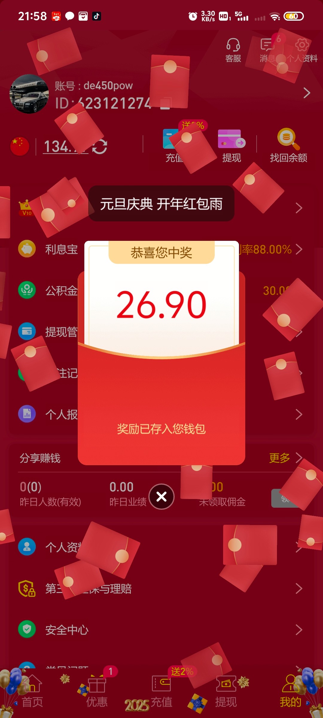 @不倒翁 ,我新号,注册了几天没看。下午上号发现有12块