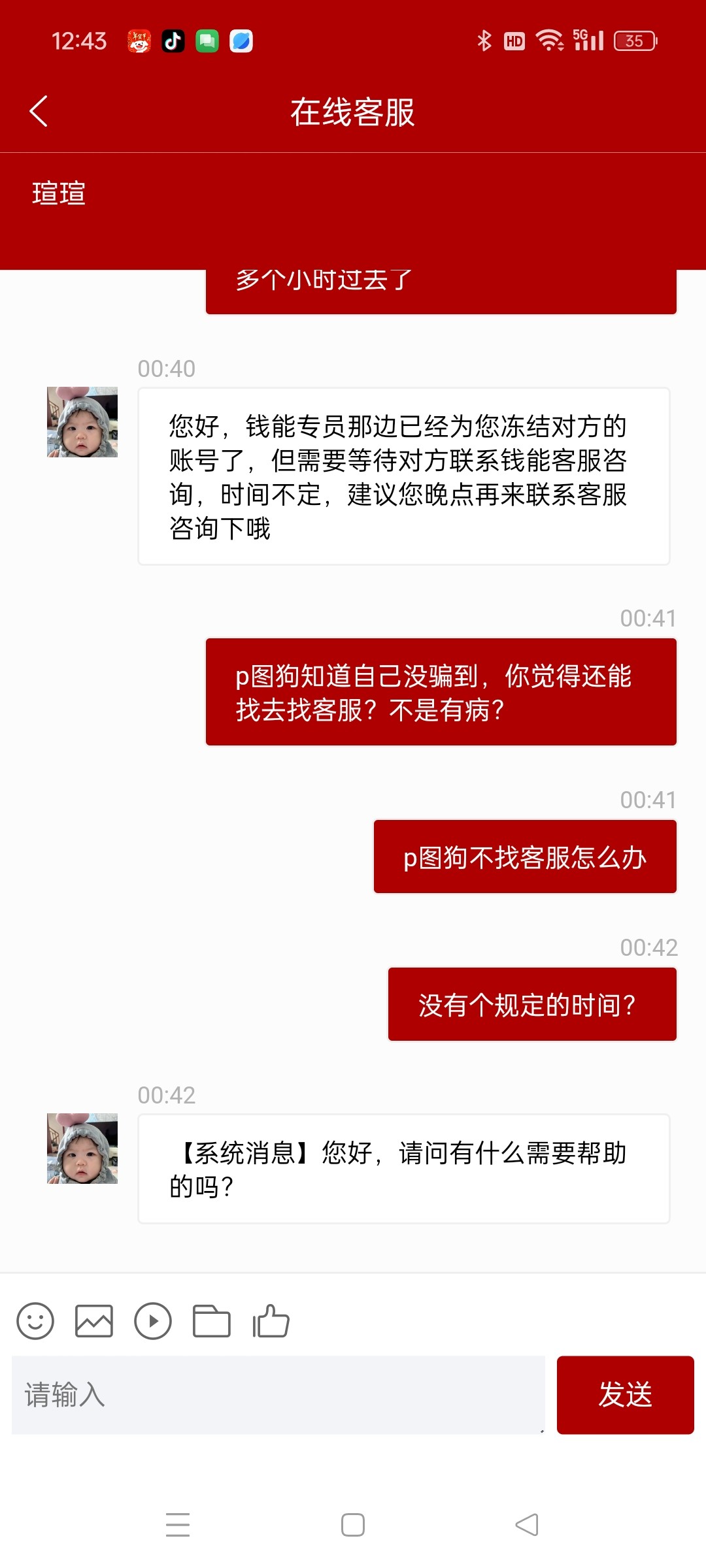 找客服就是已经冻结对方账号,还请您耐心等待对方咨询客服后为您核实处理谢谢!