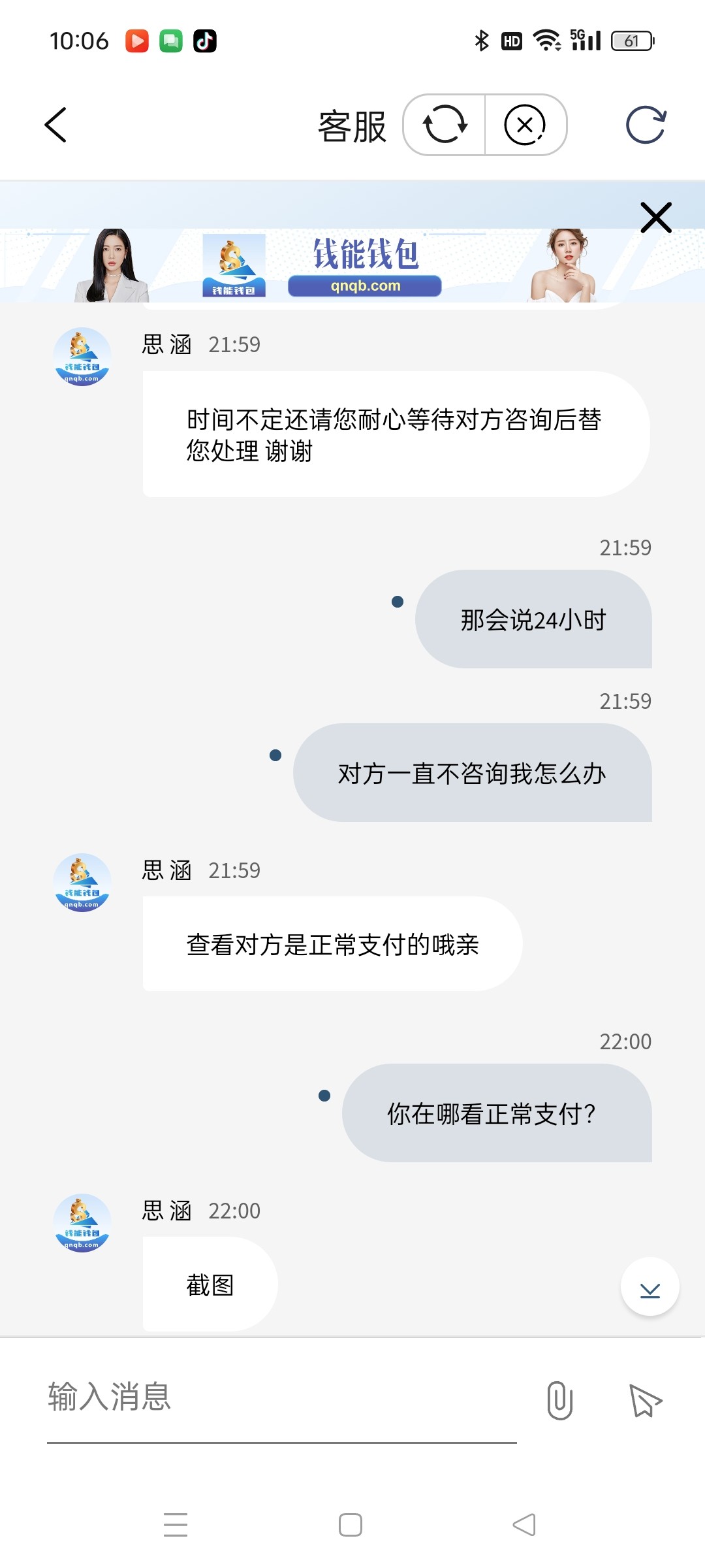 现在客服一直说等待对方联系,,时间待定,早过了24小时, 钱能也是招笑了,本来就挺难,