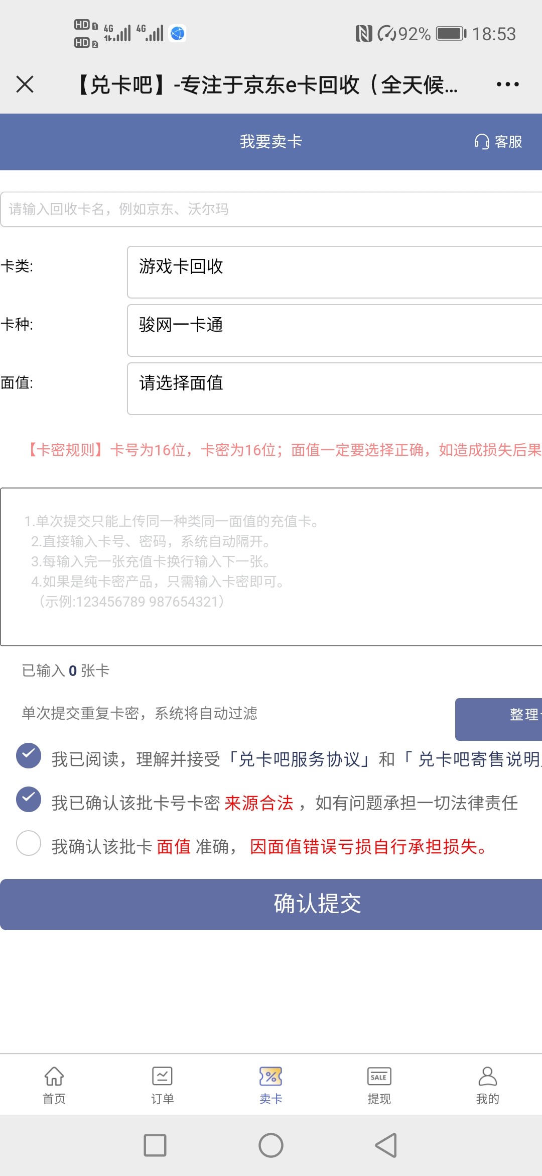相信老哥们都买错过卡密吧,买错卡密,而且在京东买的又不能退款,比如86开头的沃尔玛电子卡经常有人误以为是23开头的,不给退款的情况下可以去微信公众号搜索 兑卡吧 里面可以回收各种卡密,但是会有一定的折扣,但是也能帮老哥们尽量的挽回损失(被绑定的也可以回收,只要还有余额)具体教程我就不说了,基本就是去里面注册一个账号然后填个卡密卡号再提交就行了,可以提醒到微信或者zfb,祝大家新年胜旧年,欢愉且胜意!