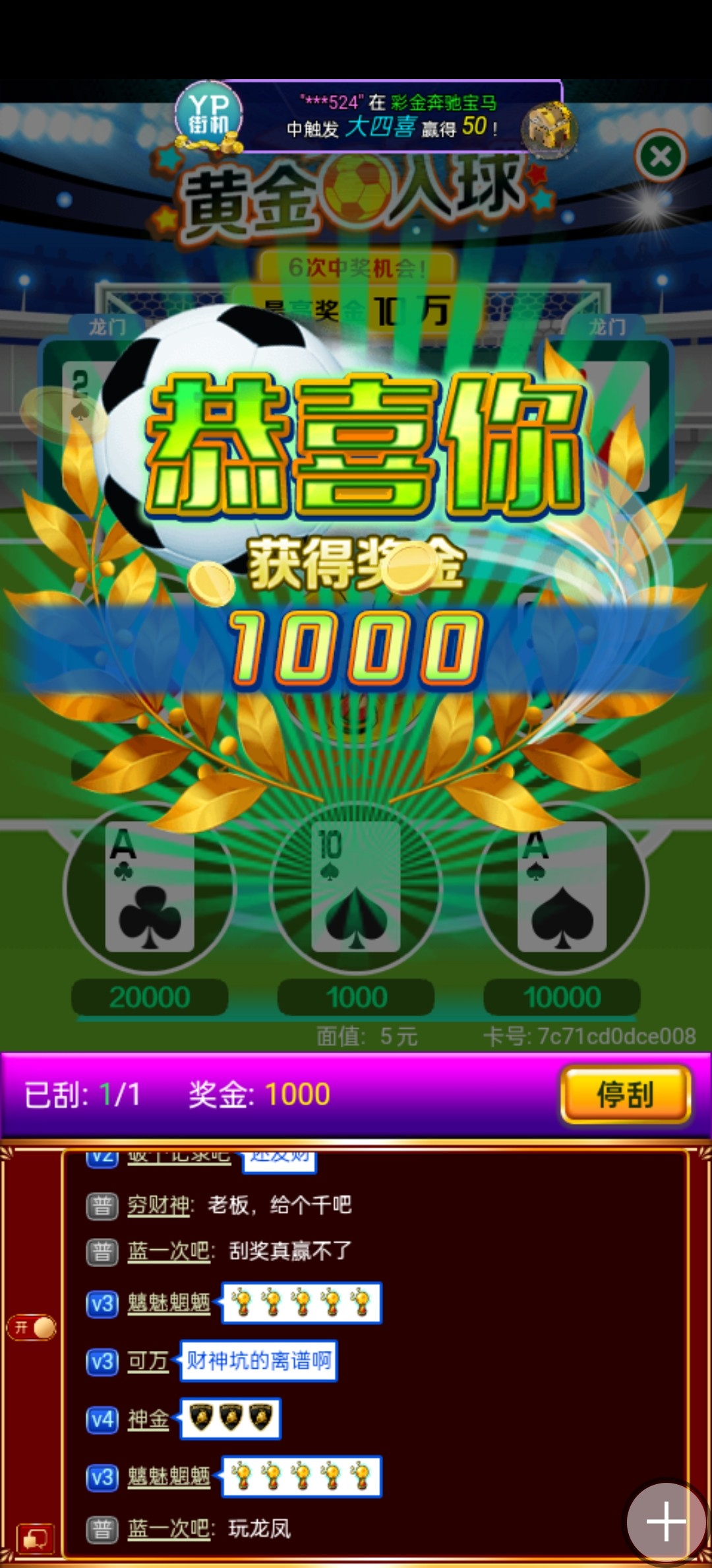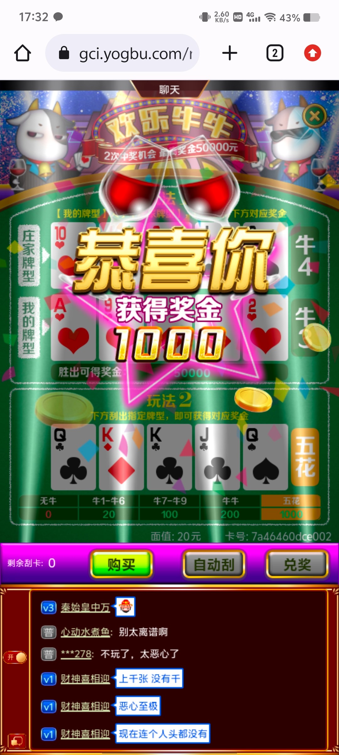 我中过欢乐牛牛的1000 连着来两张1000