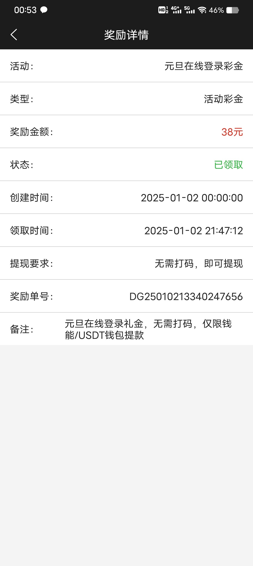 卧槽,精彩系列的011.com元旦登陆礼金好大,我昨天没充值,不过借呗逾期上周都还了 两个号都是48,别的精彩系列都是几块
