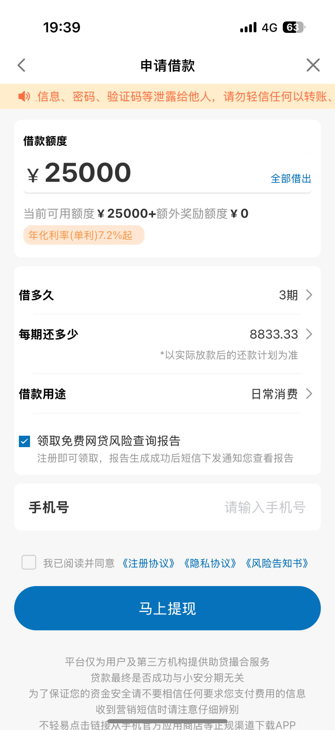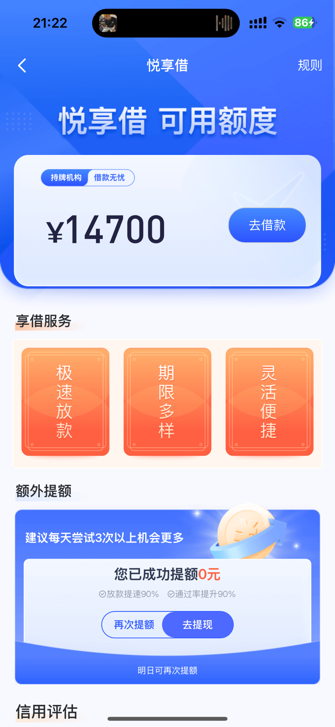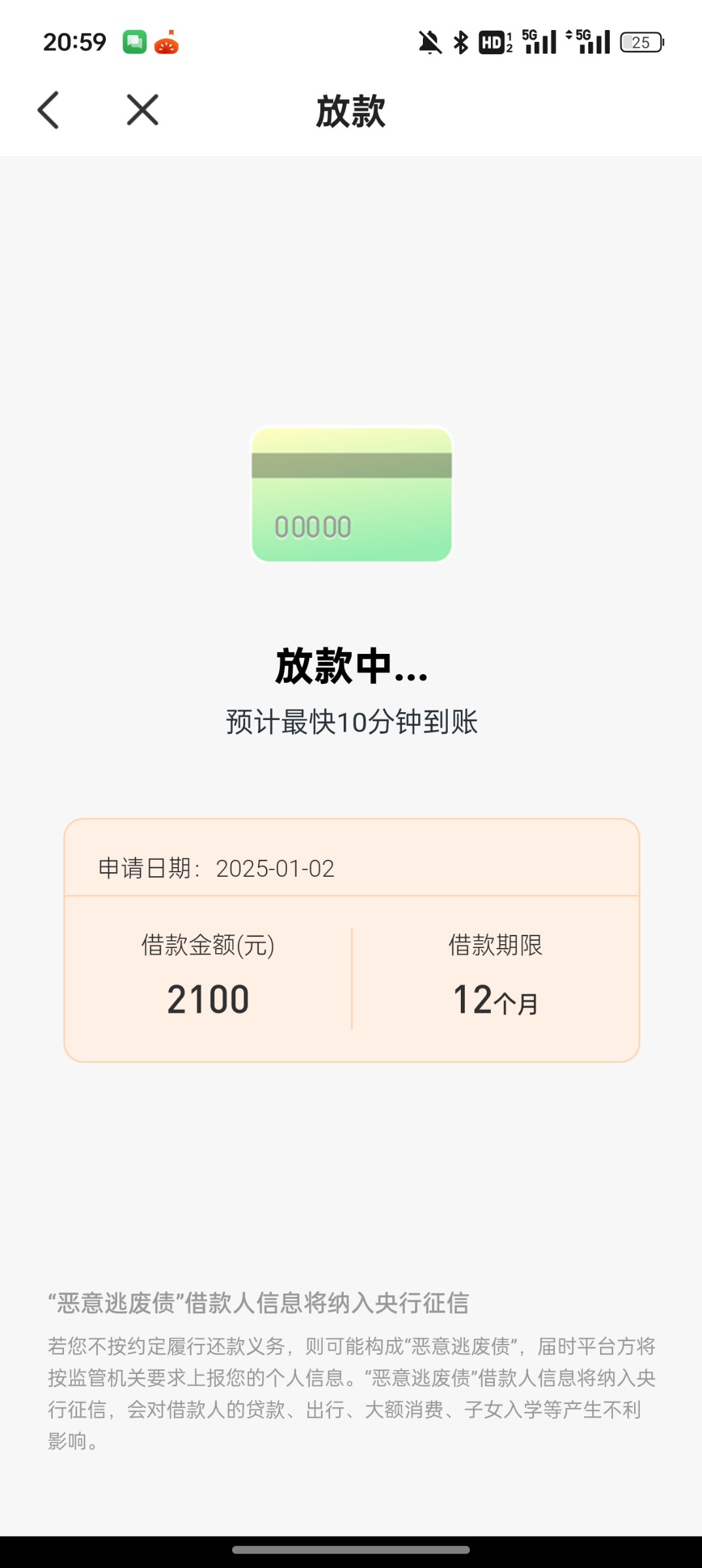 能借2万5,不过我安逸花还欠着几千分期,不贷款干了