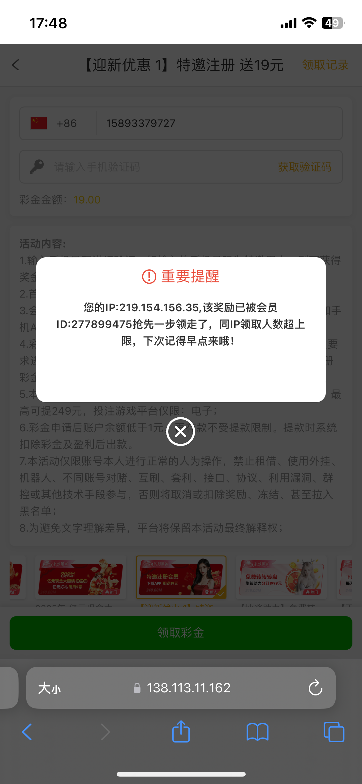 领到了,两个号,同名,一个挂了,一个打到198,提现秒到