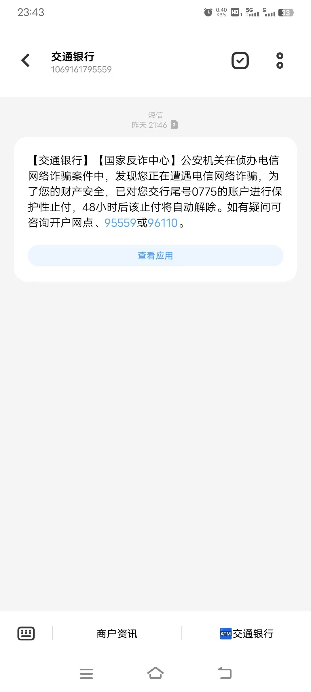 前两天下个SAGEW软件被反诈请去喝茶三小时.查手机查到没电,把我的老黄都倒腾出来了。喜提身份证暂扣15天,所有银行卡止付15天。完事警车把我送到家门口.恶心的是我邮政GAB2止付投诉一个月,第二天给我说叫我去取现.现在只能等15天.了.