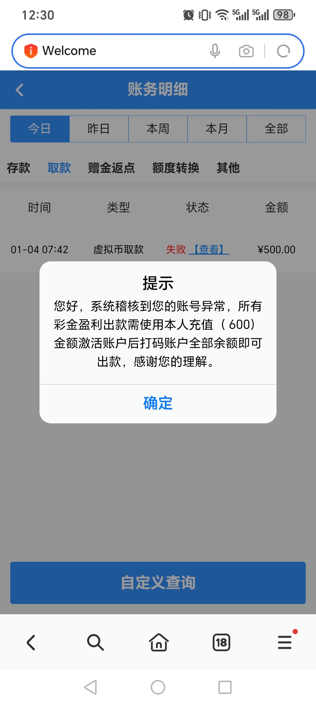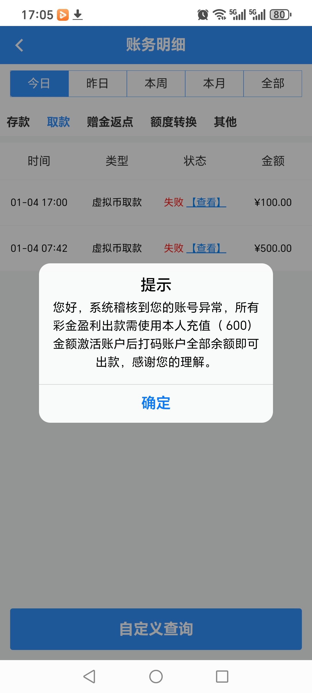 我反正每次都出的,但是我的只充100,就算赢了也是分次提。600不想充先扔那,过几天充100,打够流水就可以提了。