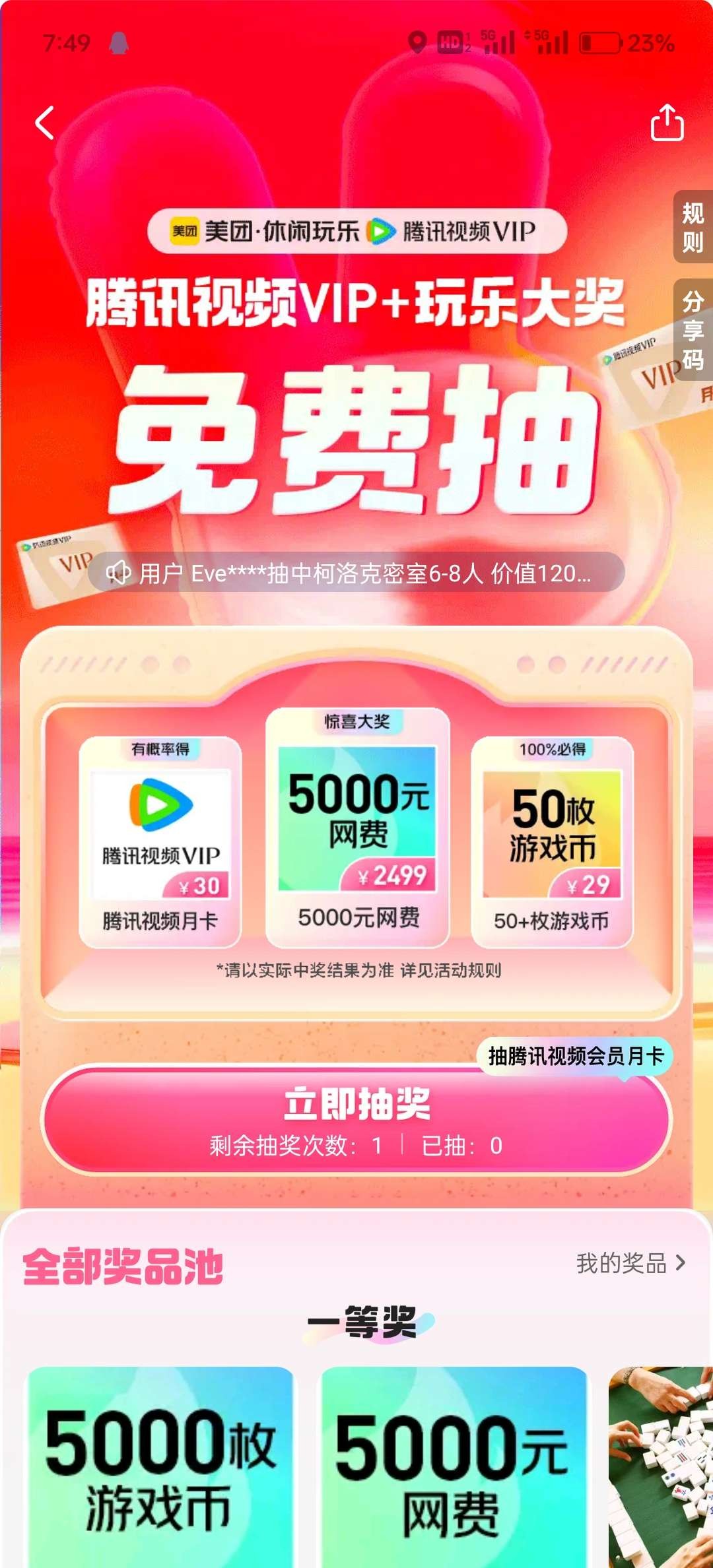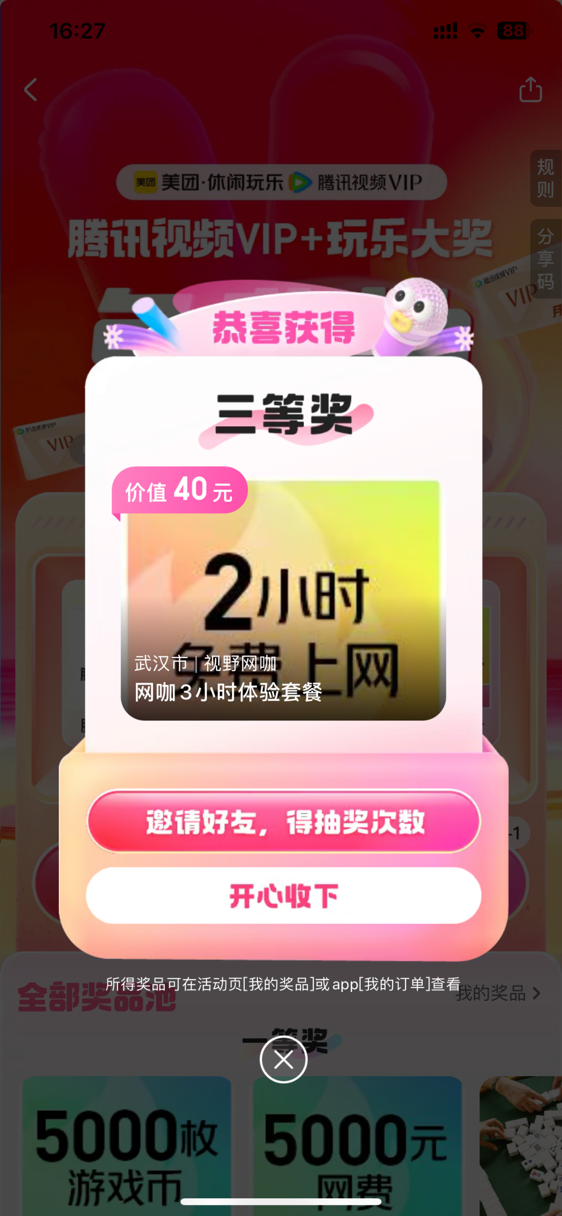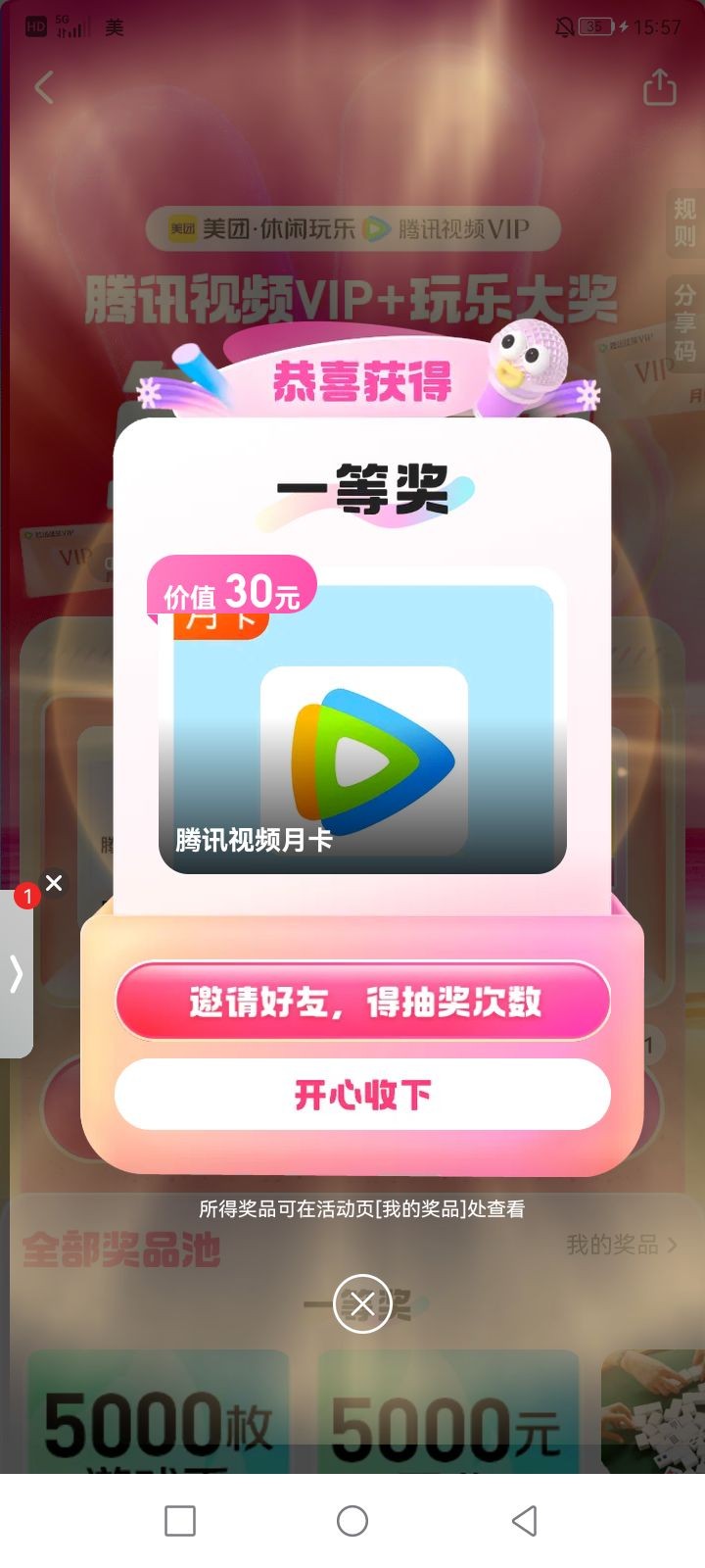 除了一二等奖 跟腾讯会员 其他卵用没有