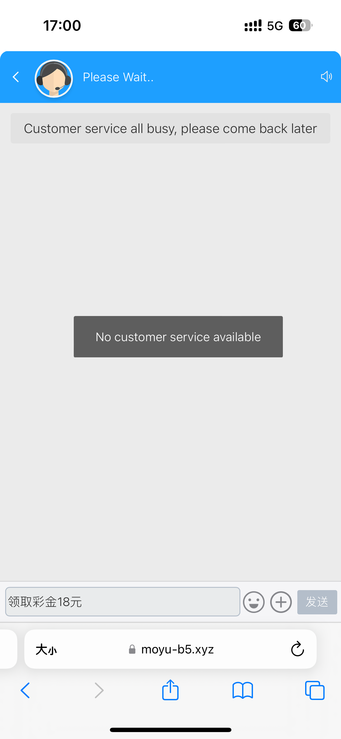 Customer service all busy, please come back later
