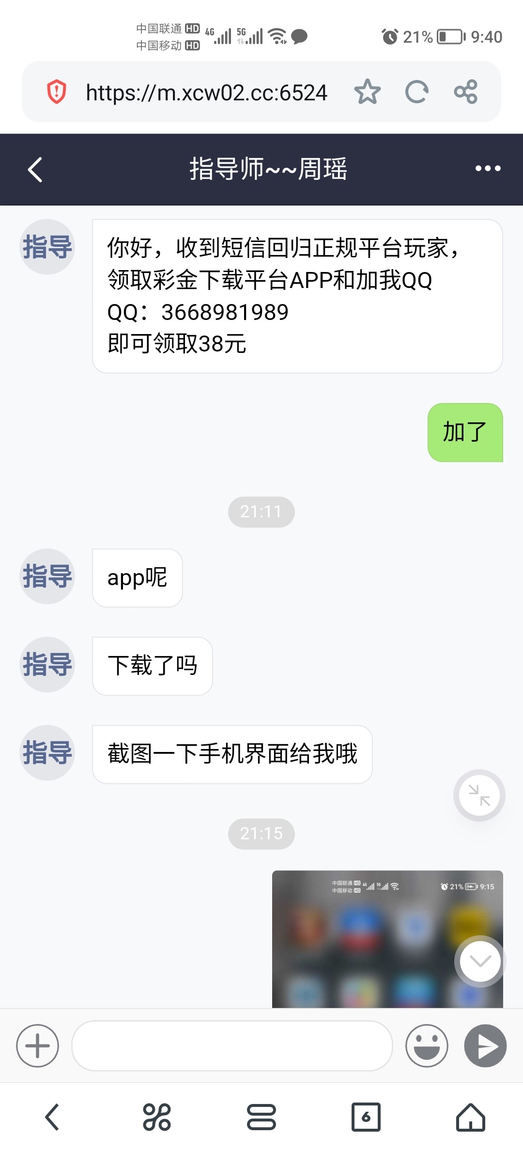 我是收到短信的 点开链接直接有邀请码注册 然后找客服 问短信来的有没有体验金 ,客服让我加qq和下载APP截图 直接给了38,没让充值和绑定银行卡,短信我不小心删了才想起来发论坛 链接是我在浏览器记录找到的 打开直接注册 找客服碰瓷试试 没要我手机号和截图 就加个qq和下载APP截图发给他就送 我打挂了了 https://m.xcw01.cc:5067/home