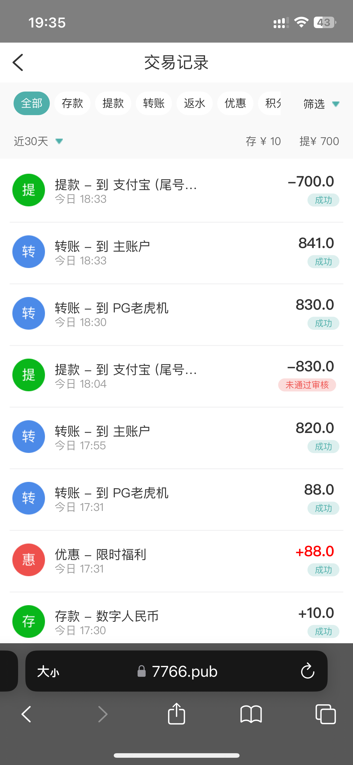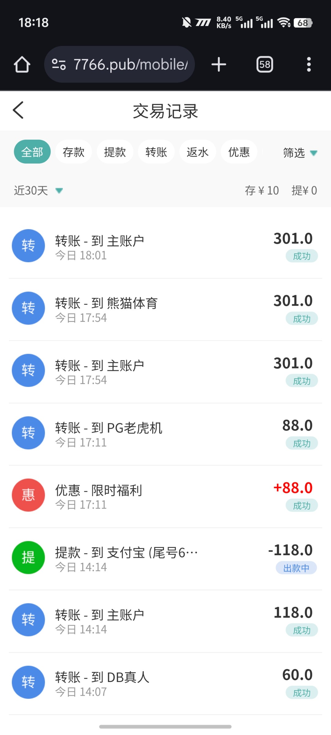 我充的十块上一百,两点钟提的支付宝,审核通过了,一直出款中,现在都没到,刚才玩88优惠券又上300了,前面提的一百还是没到,后面这三百都提不了