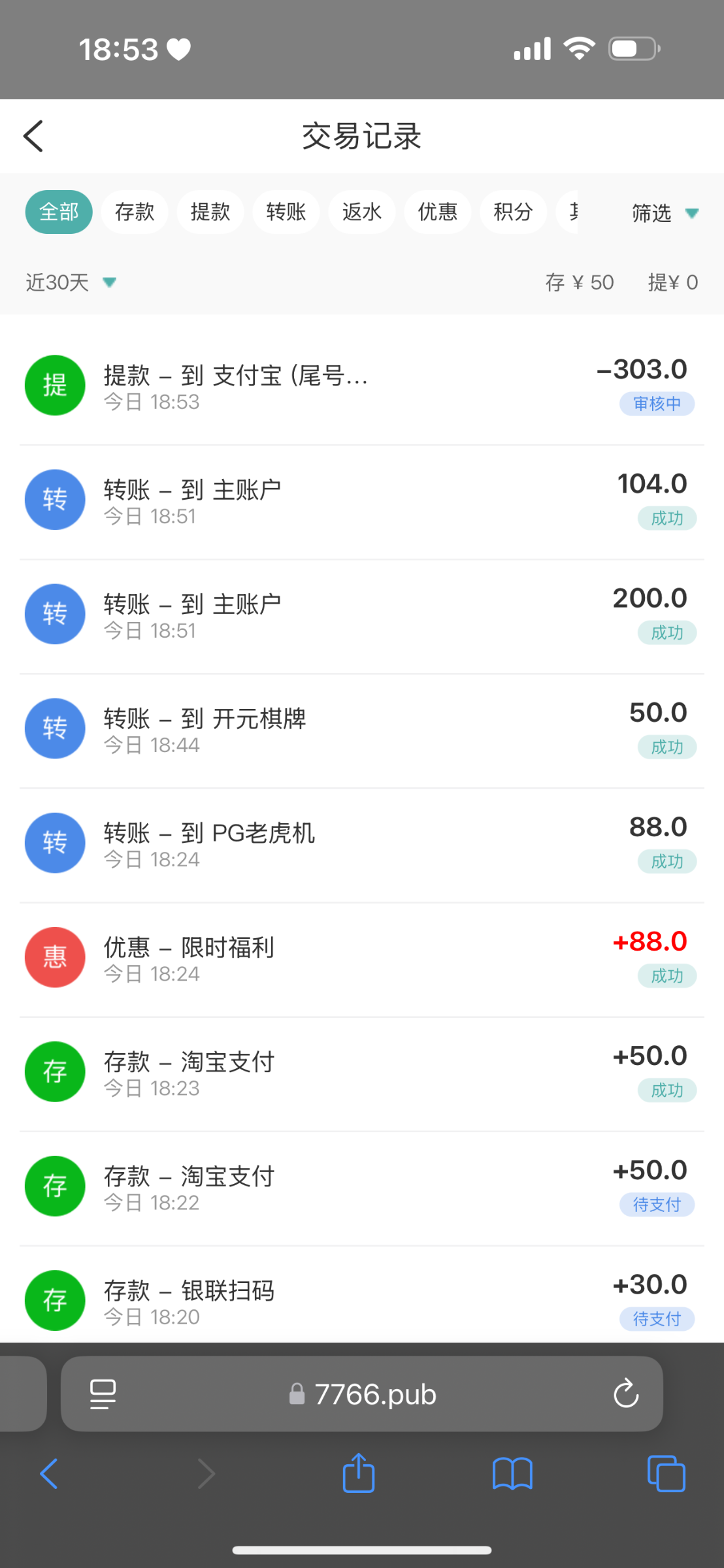 充了50提了300看看能不能到了