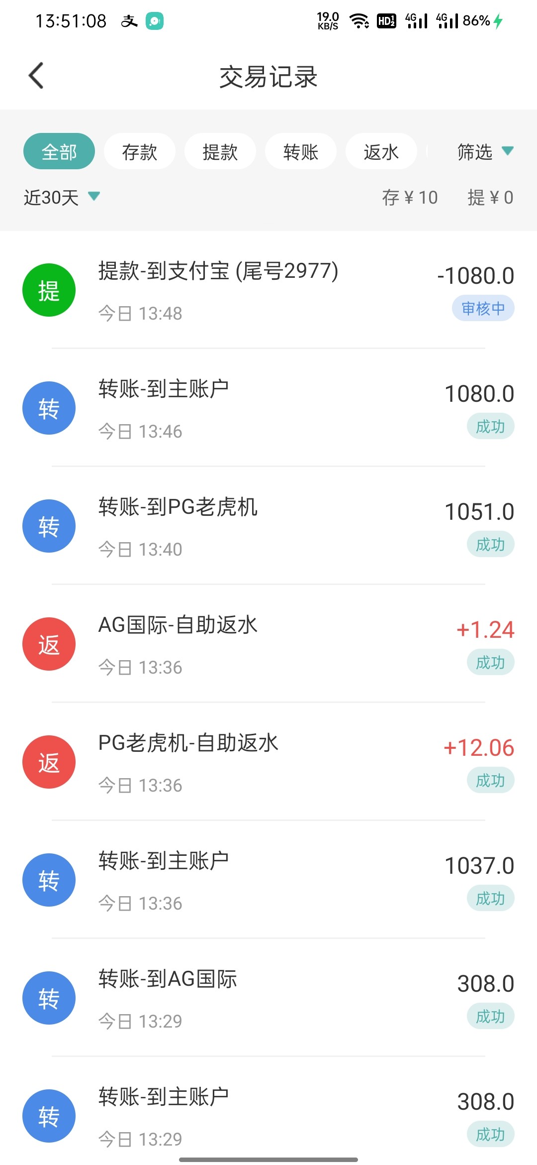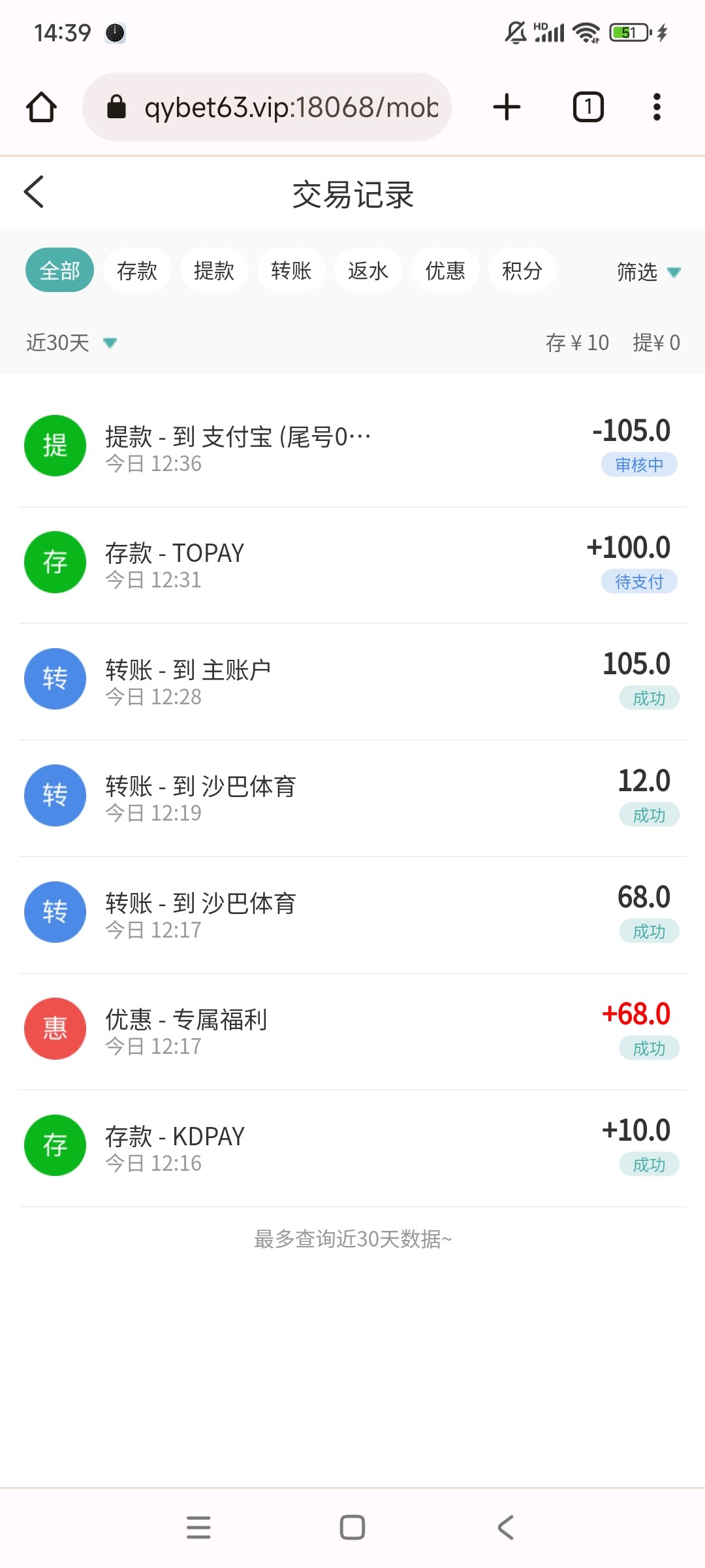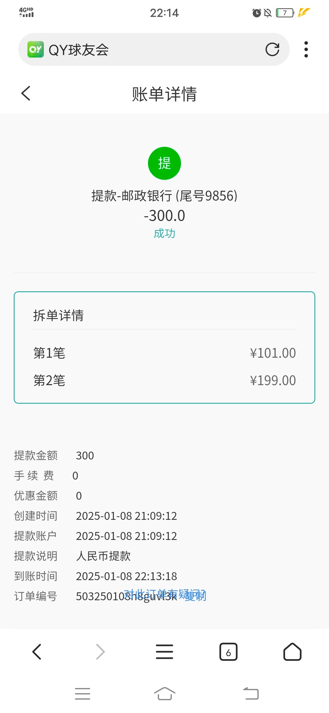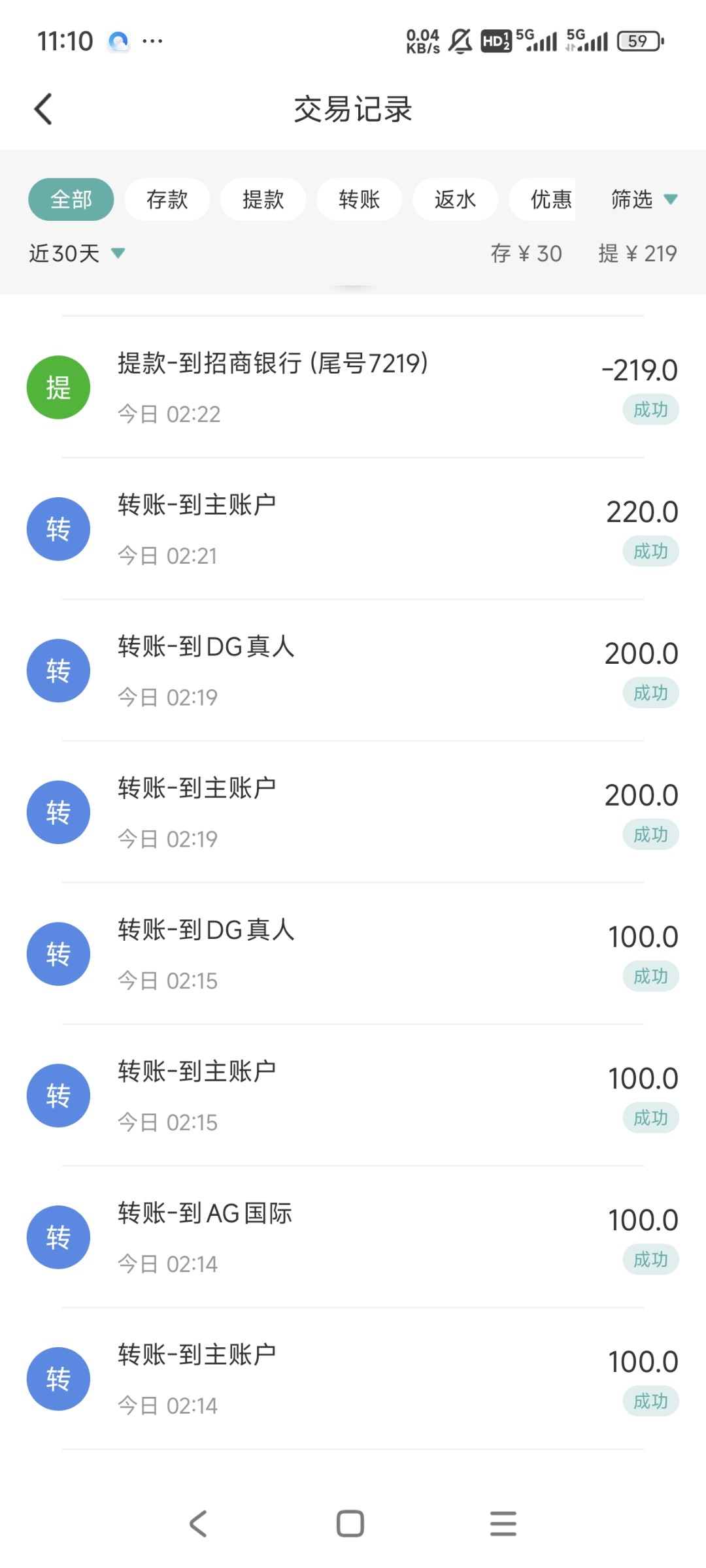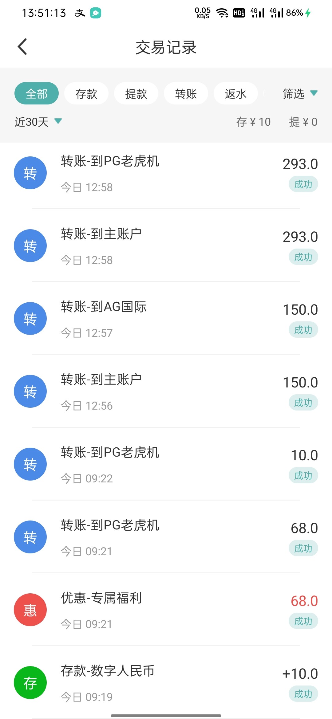 成功到账