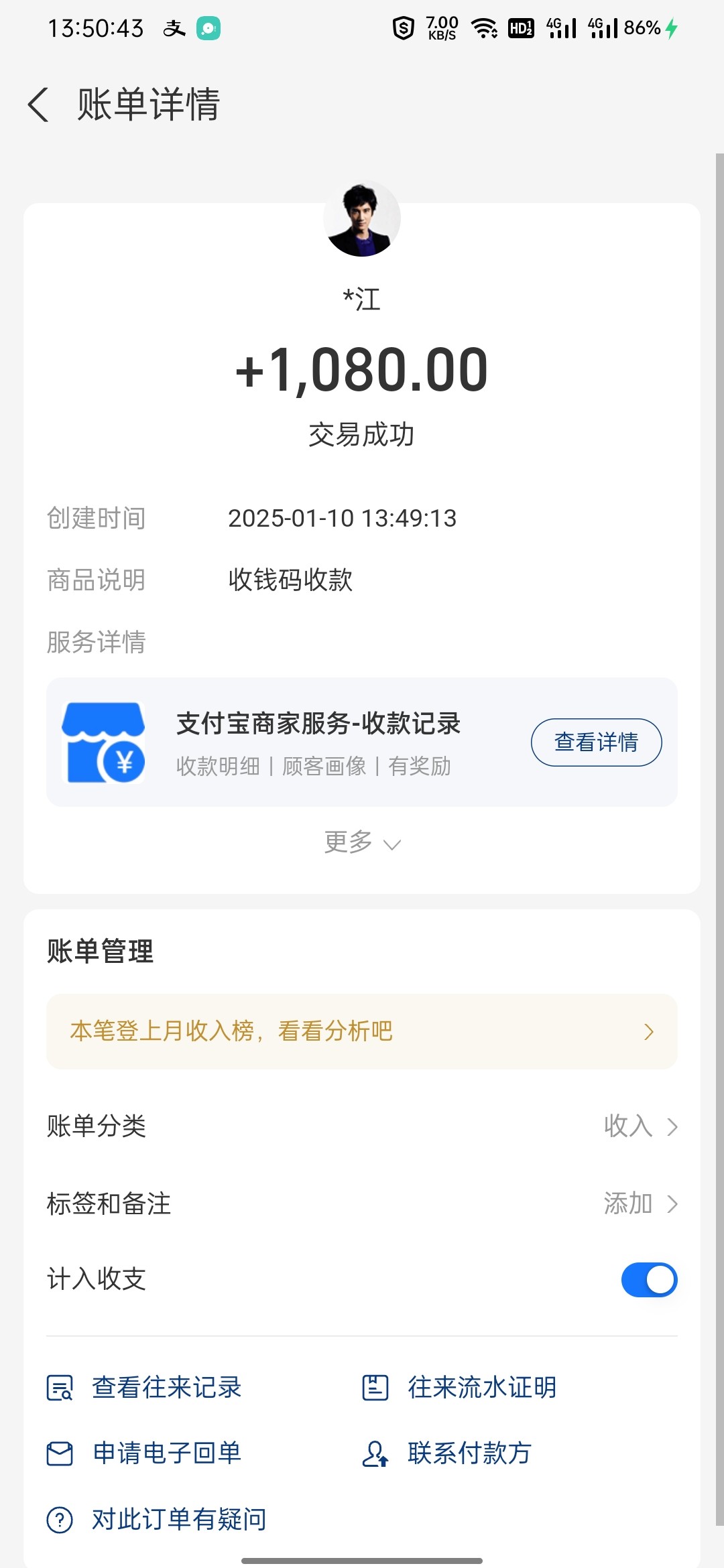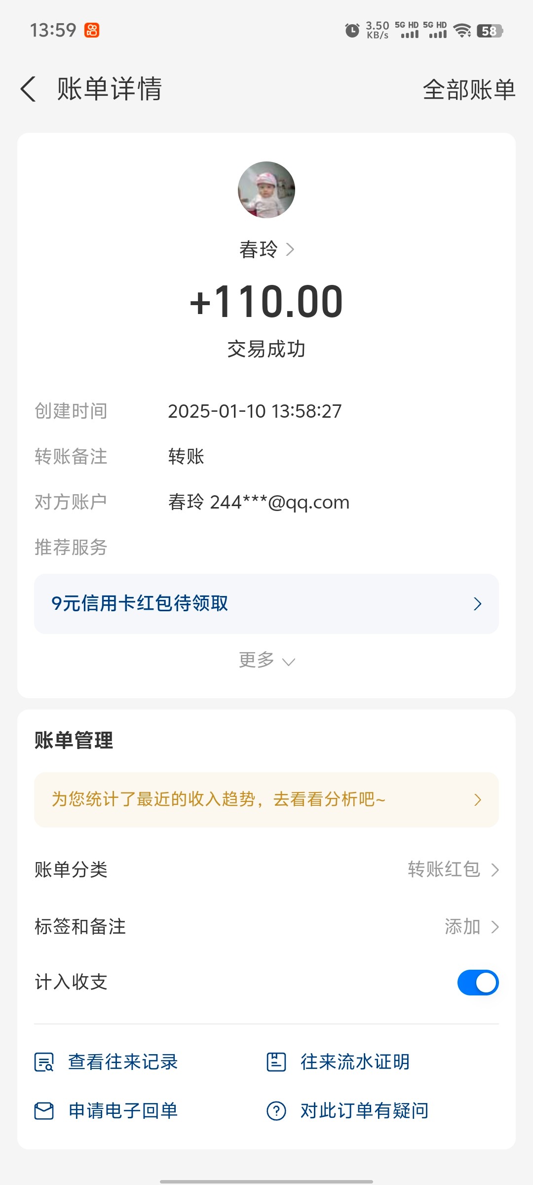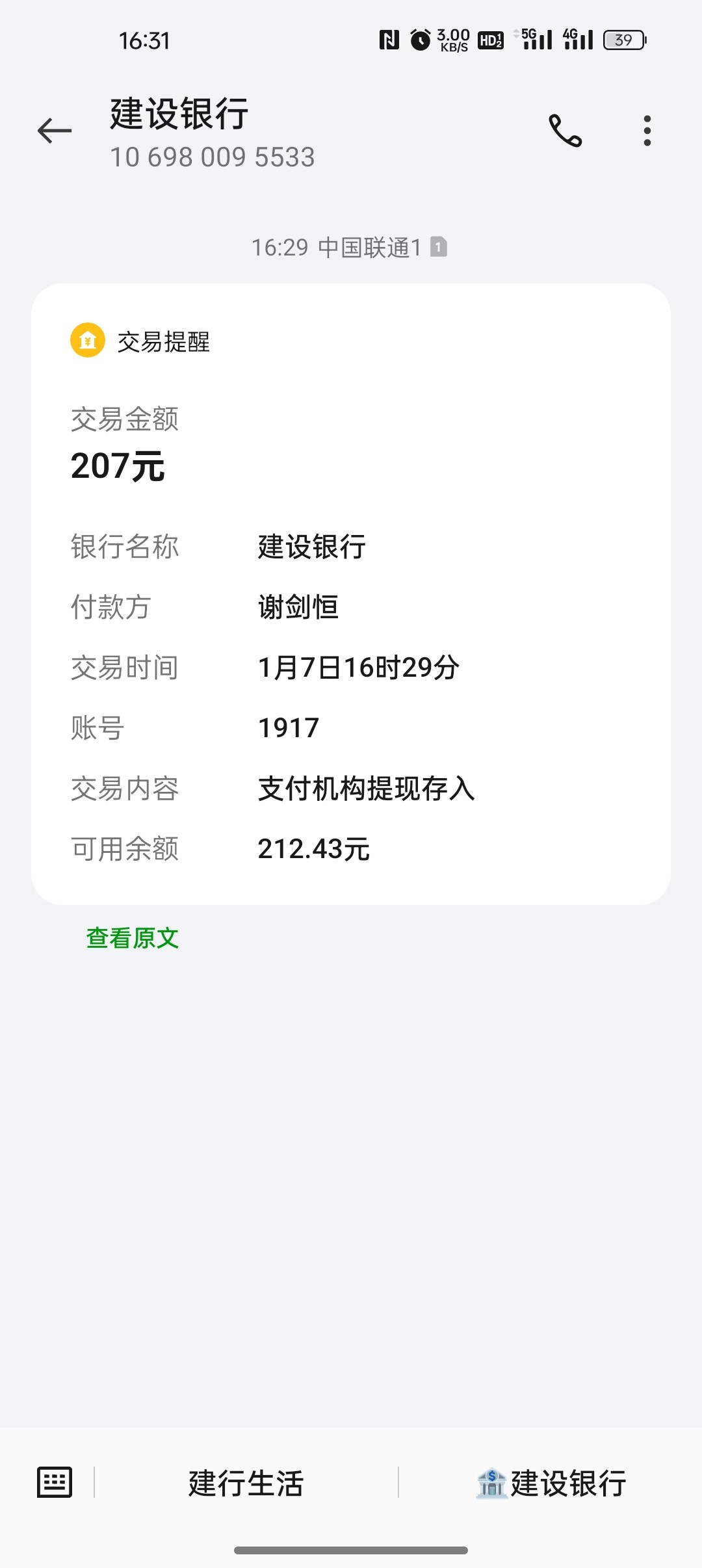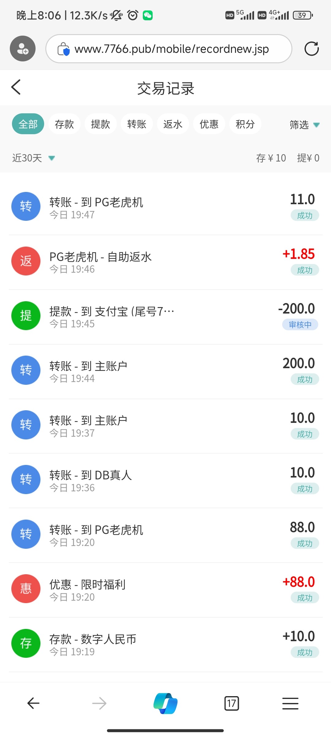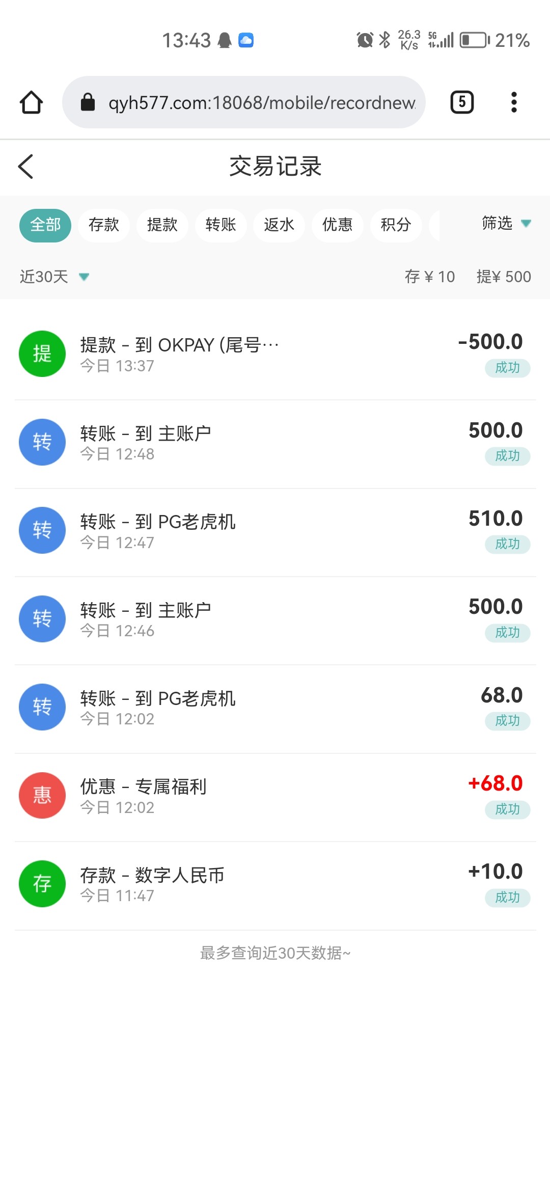 成功到账