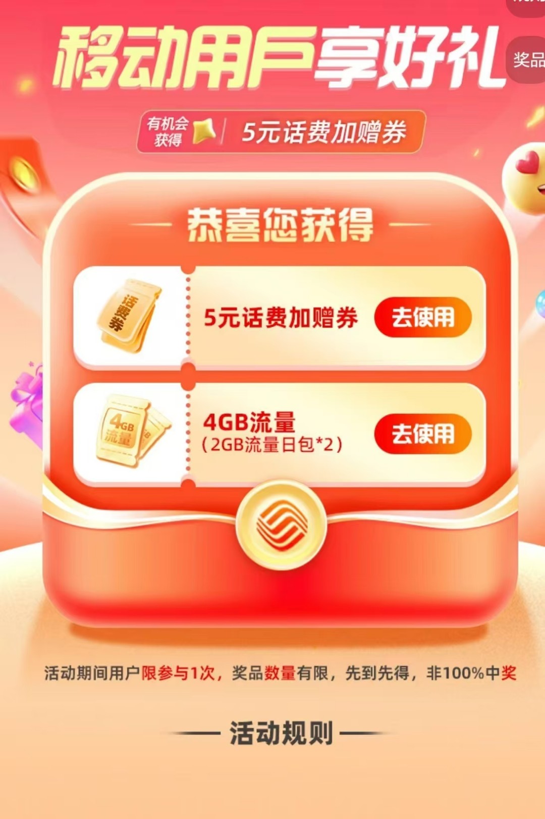 【白嫖移动卡流量或话费】