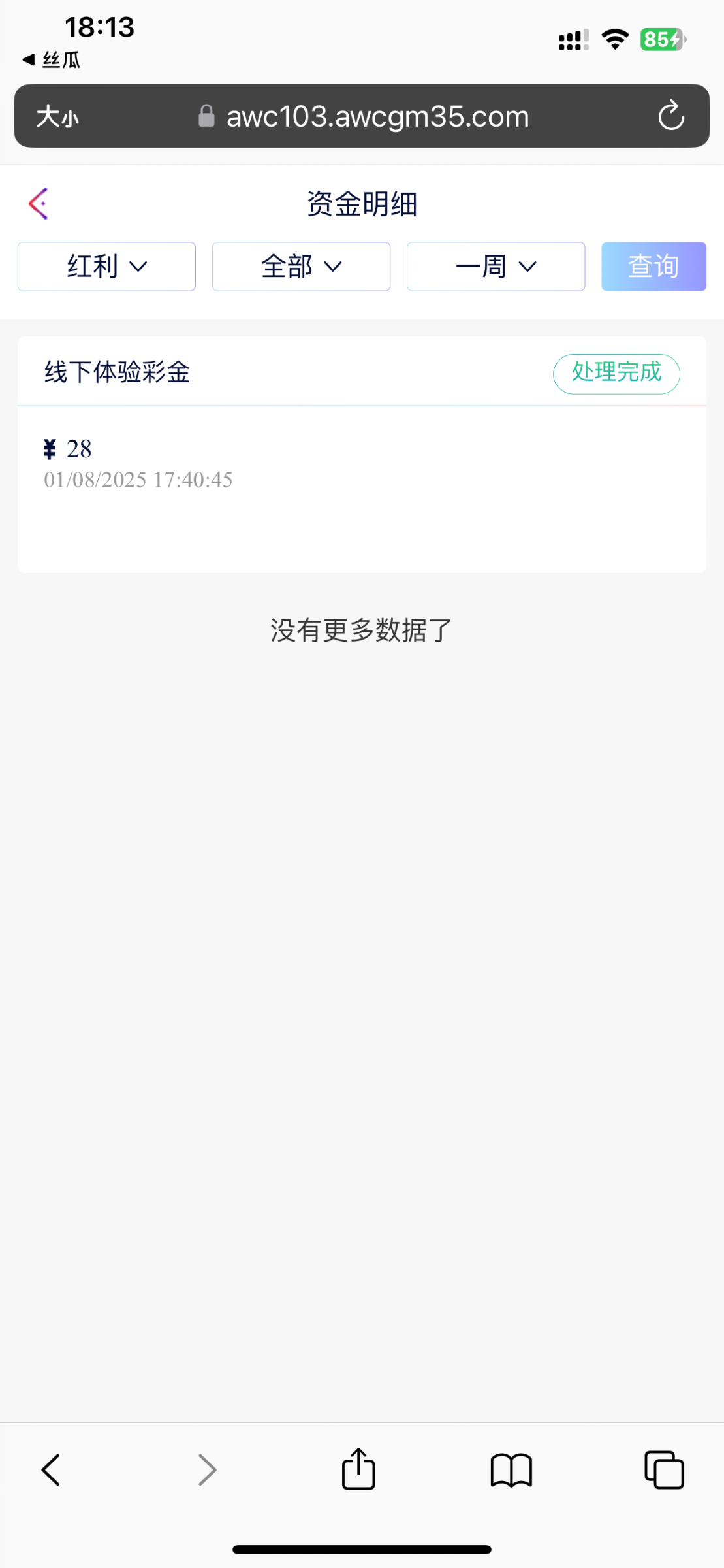 https://awc103.awcgm35.com/m/#/account,这个好像什么都不查,反正我是就搞了一张充值记录的截图