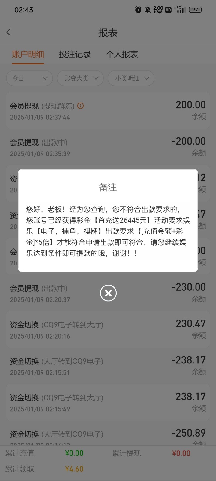 这死逼台开始黑了,充100领58要790流水打了850+流水还他妈说流水不够