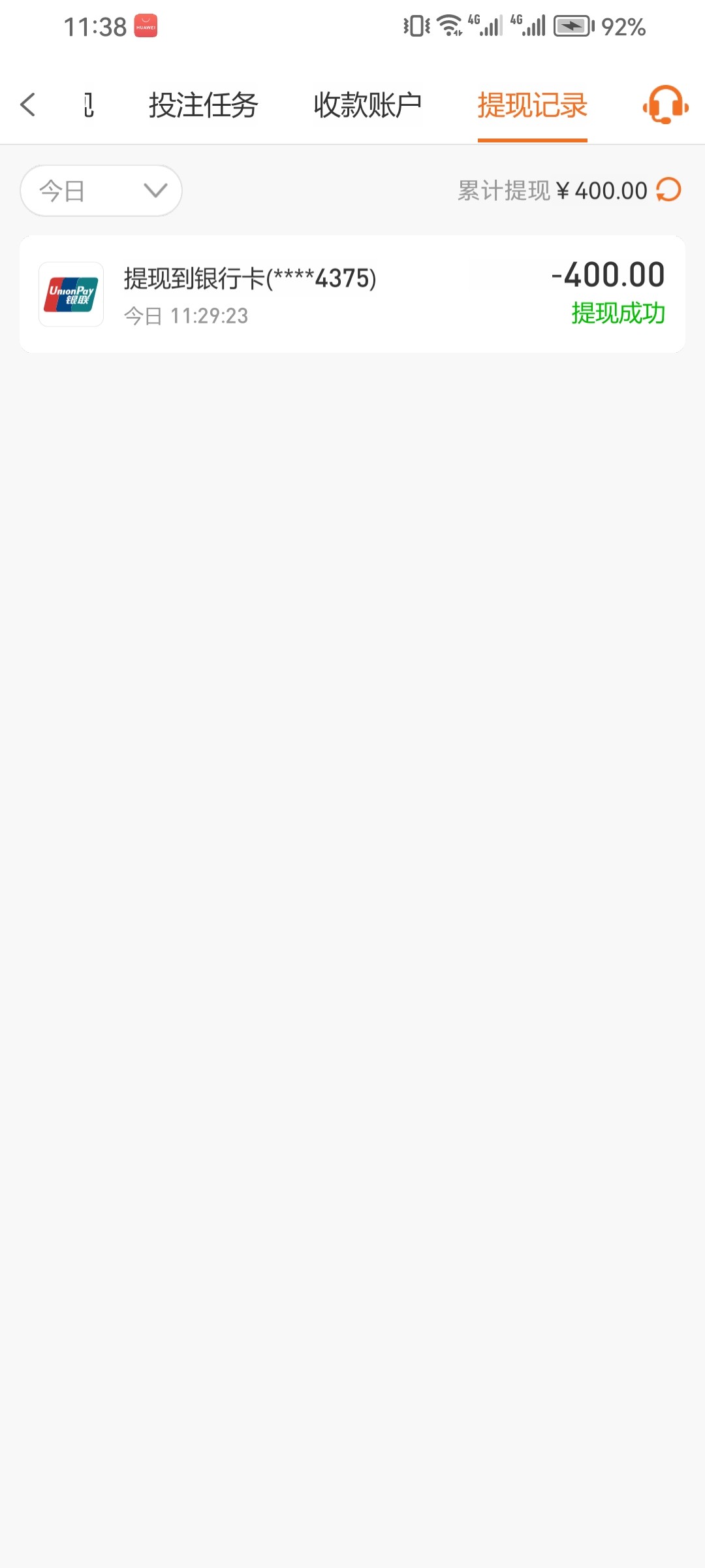 25提现400到账没过5分钟就到了