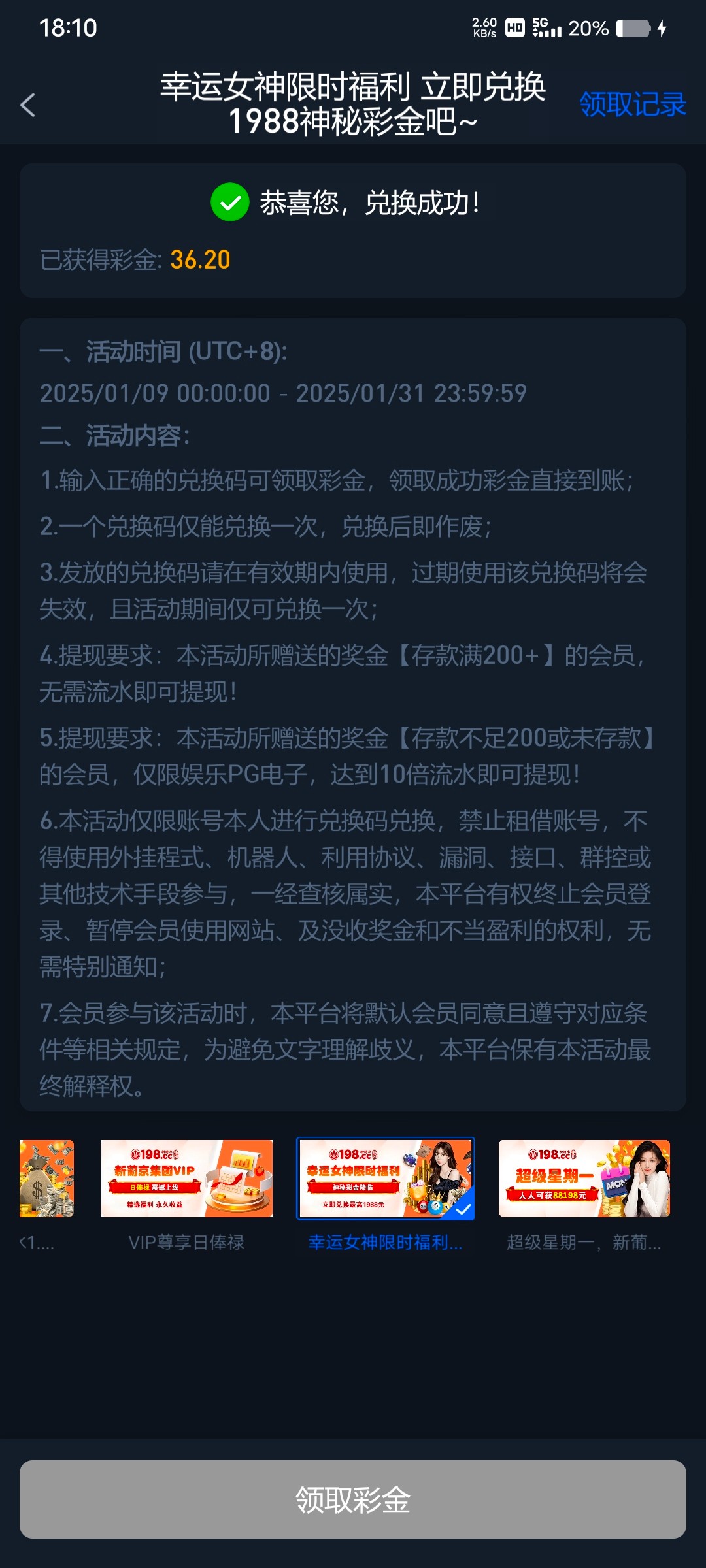 7块充值每天三场红包这个台我玩了很久不黑