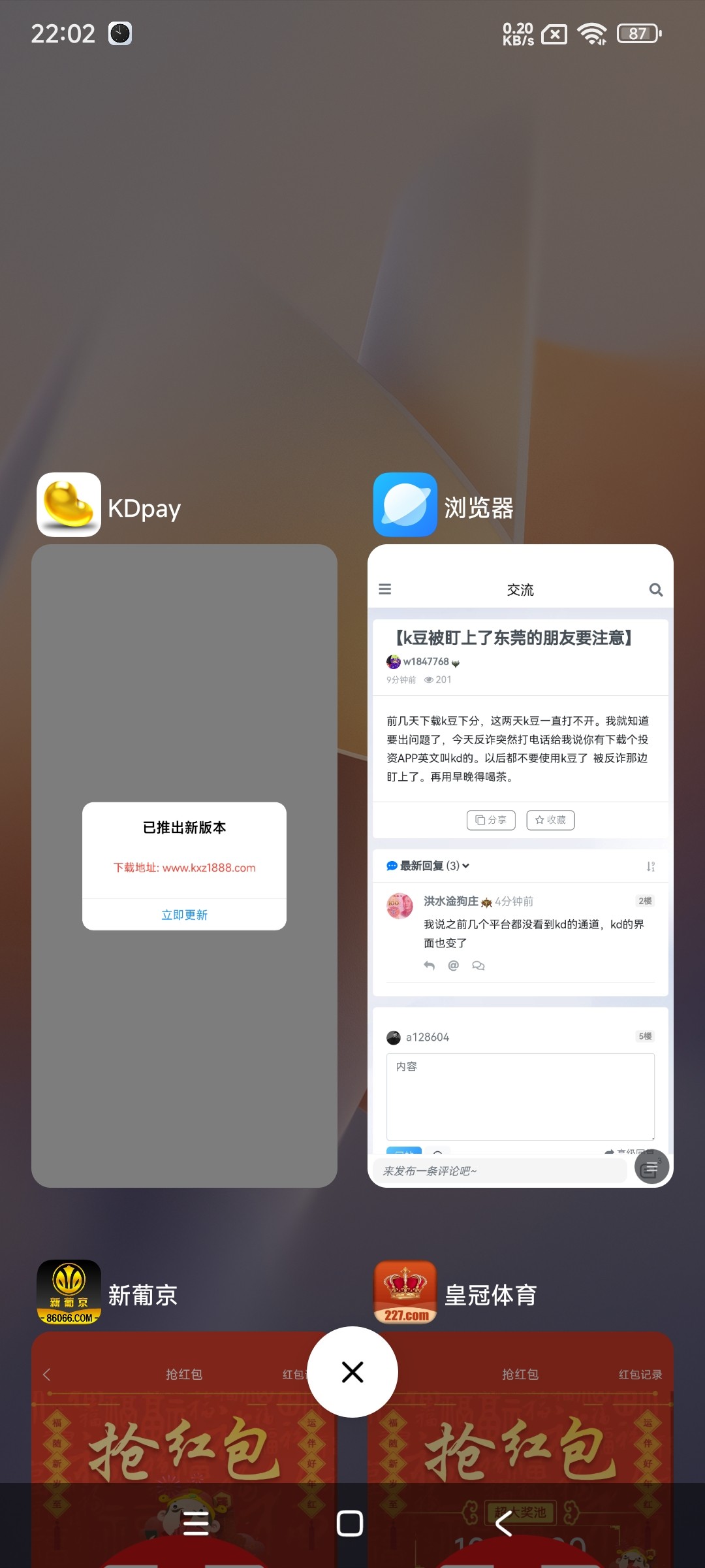 前几天下载k豆下分,这两天k豆一直打不开。我就知道要出问题了,今天反诈突然打电话给我说你有下载个投资APP英文叫kd的。以后都不要使用k豆了 被反诈那边盯上了。再用早晚得喝茶。