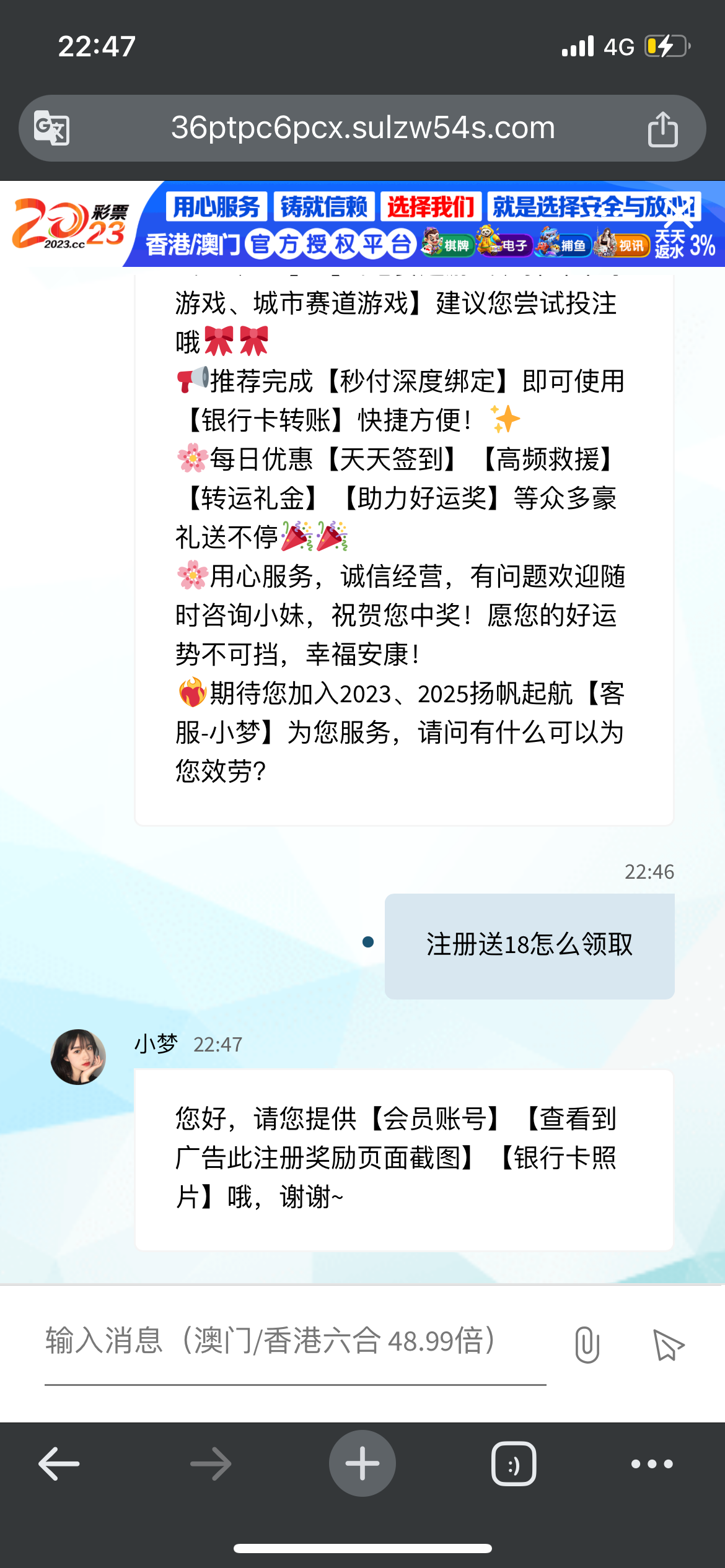 注册绑卡联系在线客服申请18注册彩金,客服问你怎么获取到活动的提供截图,你就说49图库看到的就行,u7彩票客服必须要活动截图,除了u7其他的我全部申请到了,就是一个没打出来