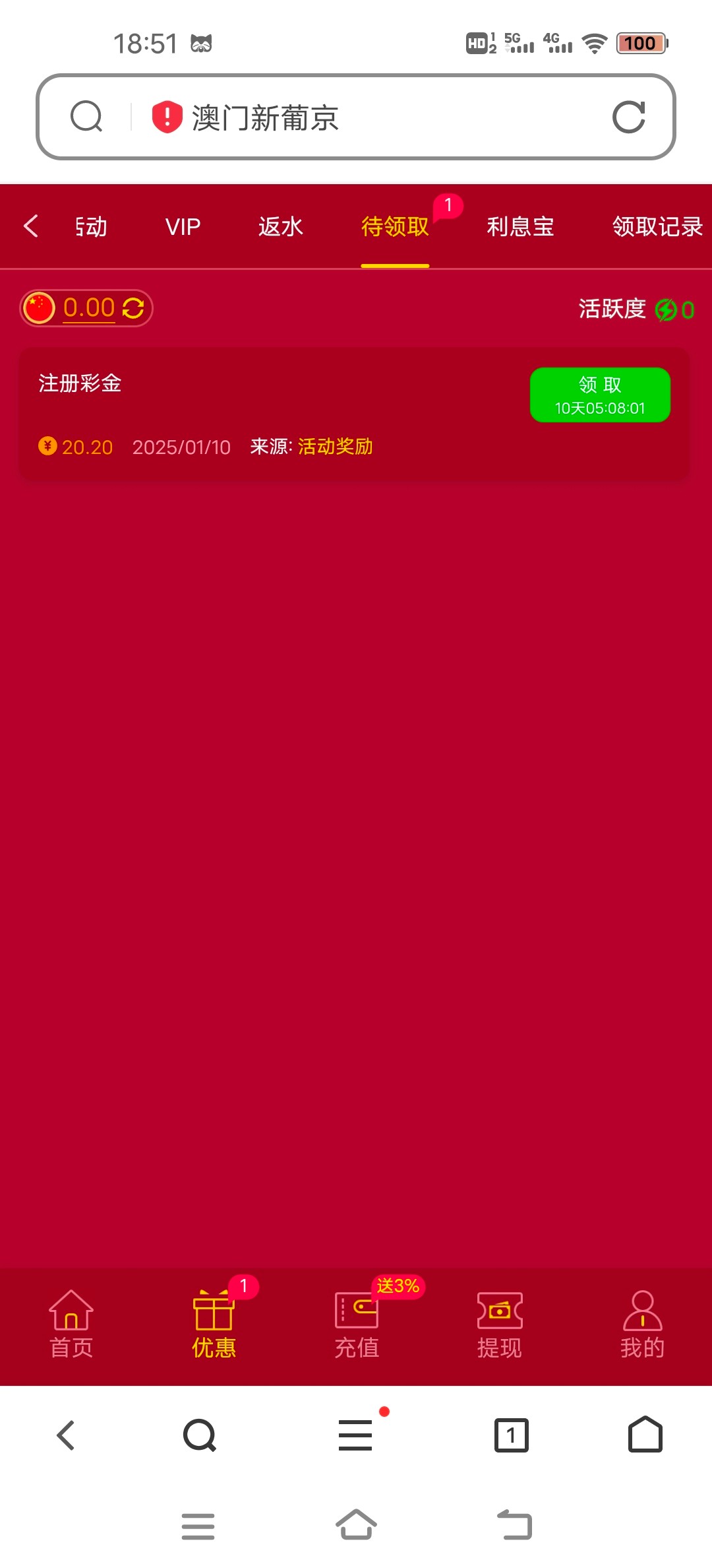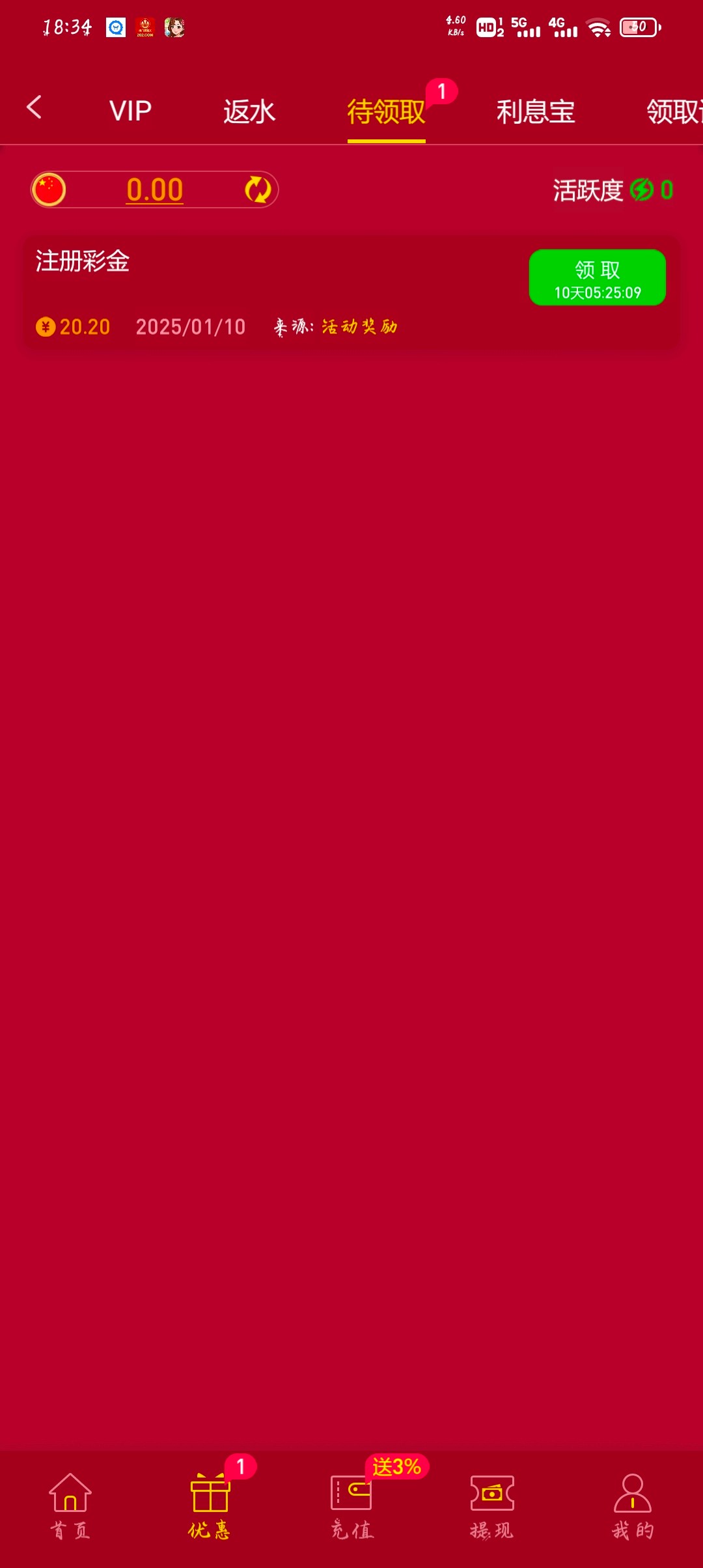 注册彩金?是不是系统送错了?