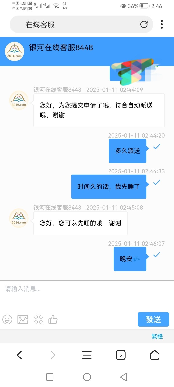 客服说我可以睡觉了