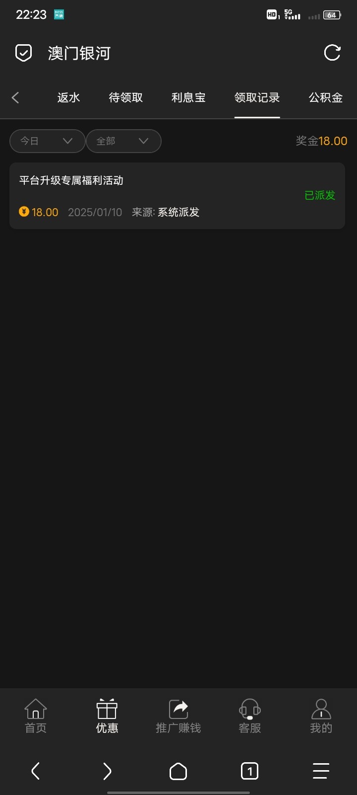 发账号给他说领取平台升级彩金 等他回复提交了 等自动派送就可以了很快就到账了的