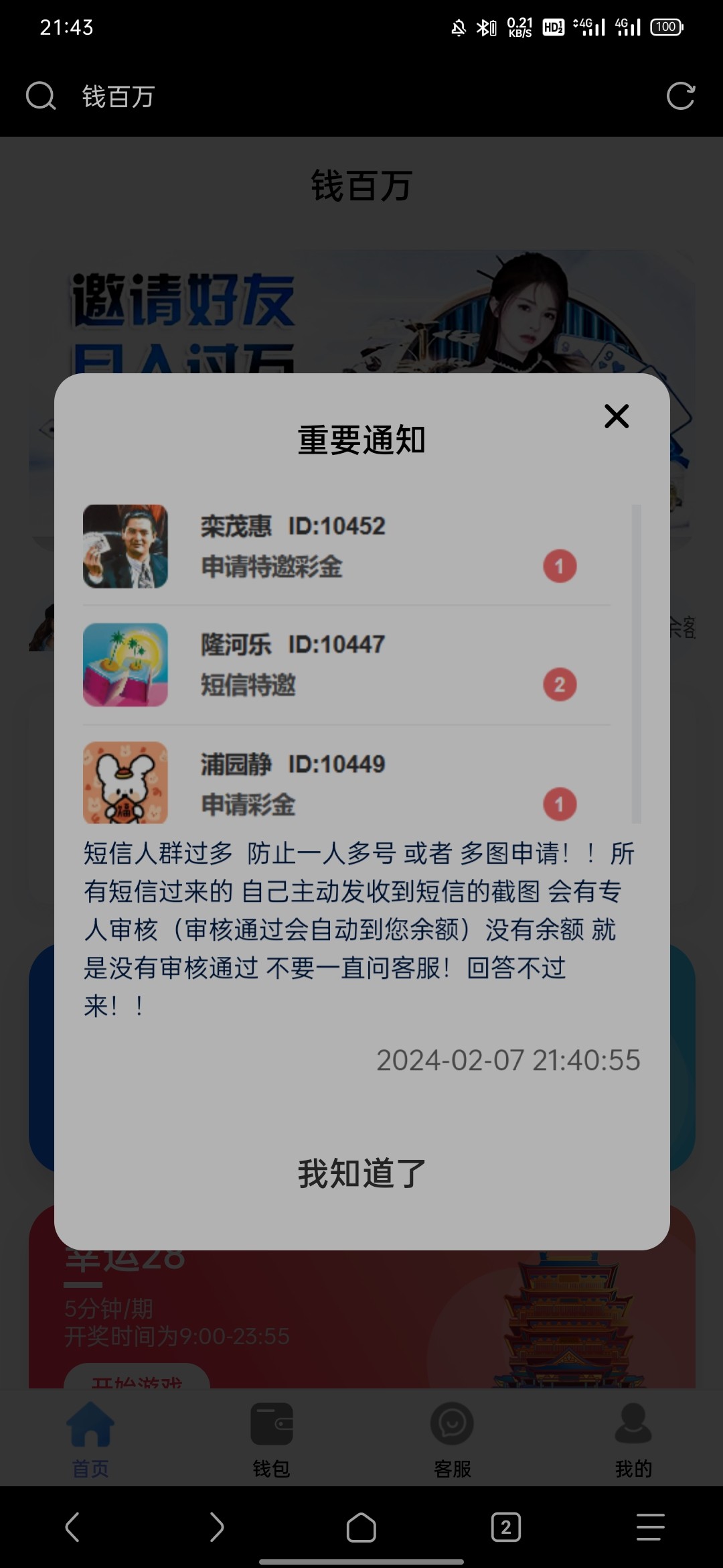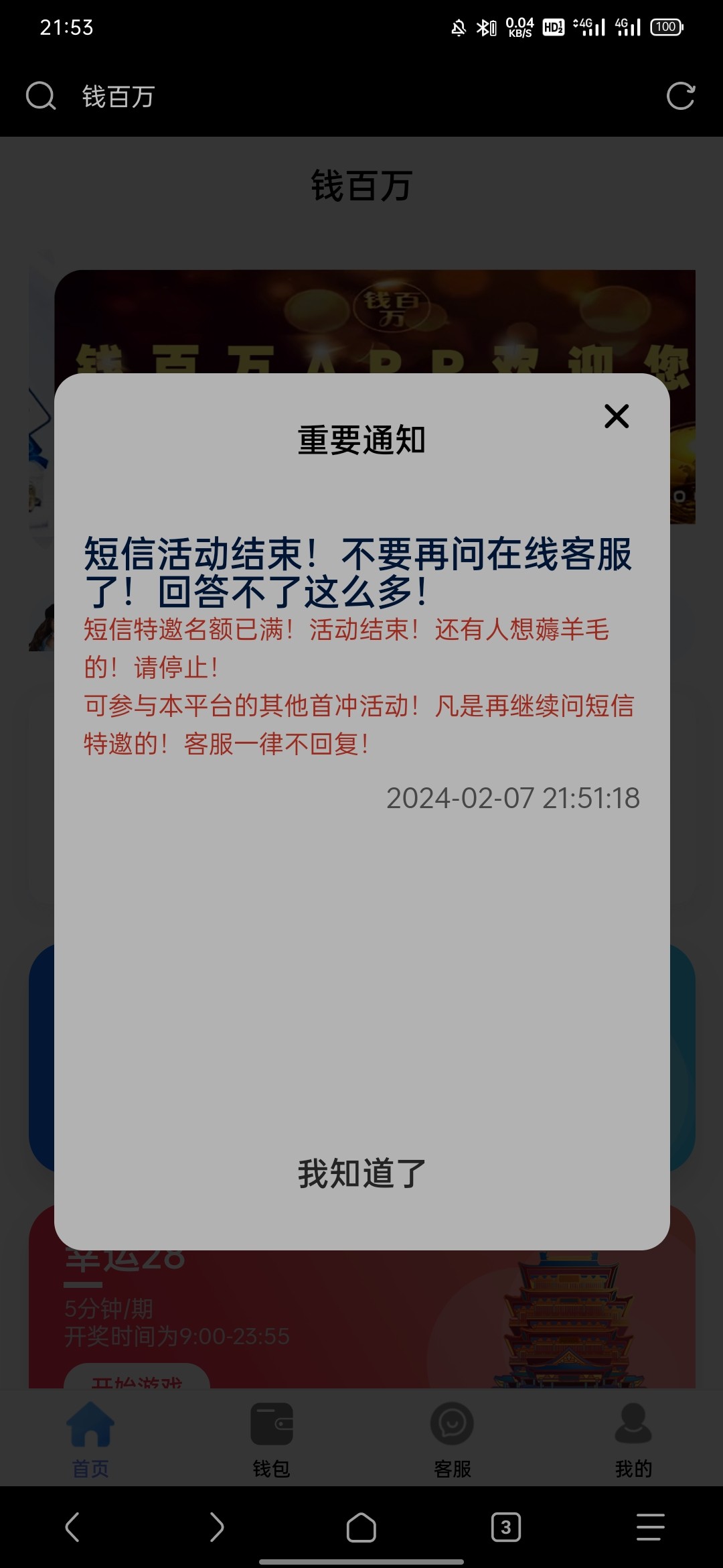 短信特邀,找客服领取碰瓷,有就有没有就没有禁止充值,短信截图在下面,地址 qbw1234.com 邀请码 8080