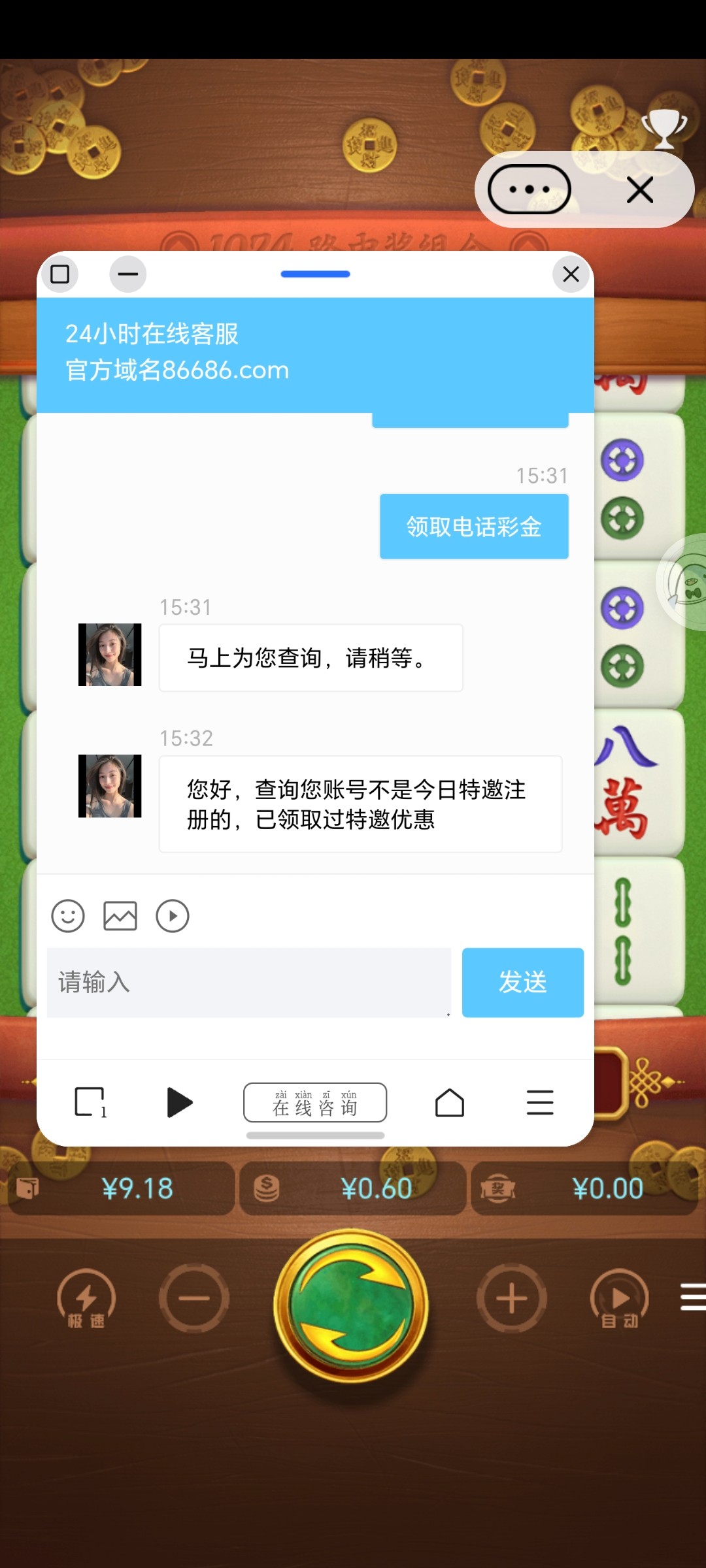 打电话来说注册绑卡下载找客服领注册彩金,但我是老用户没领到,但是登录上去发现有 不知道什么时候送的 18 电话网站 811951.vip 碰瓷自测