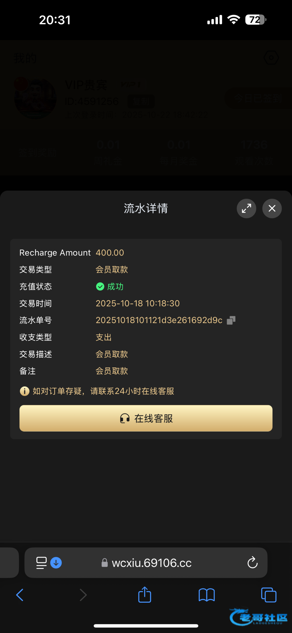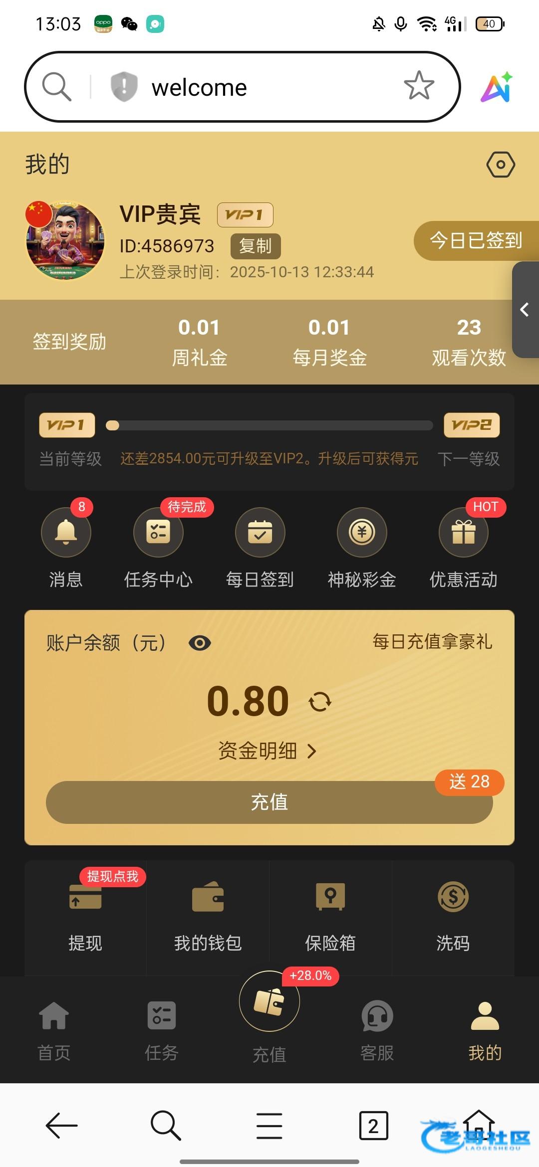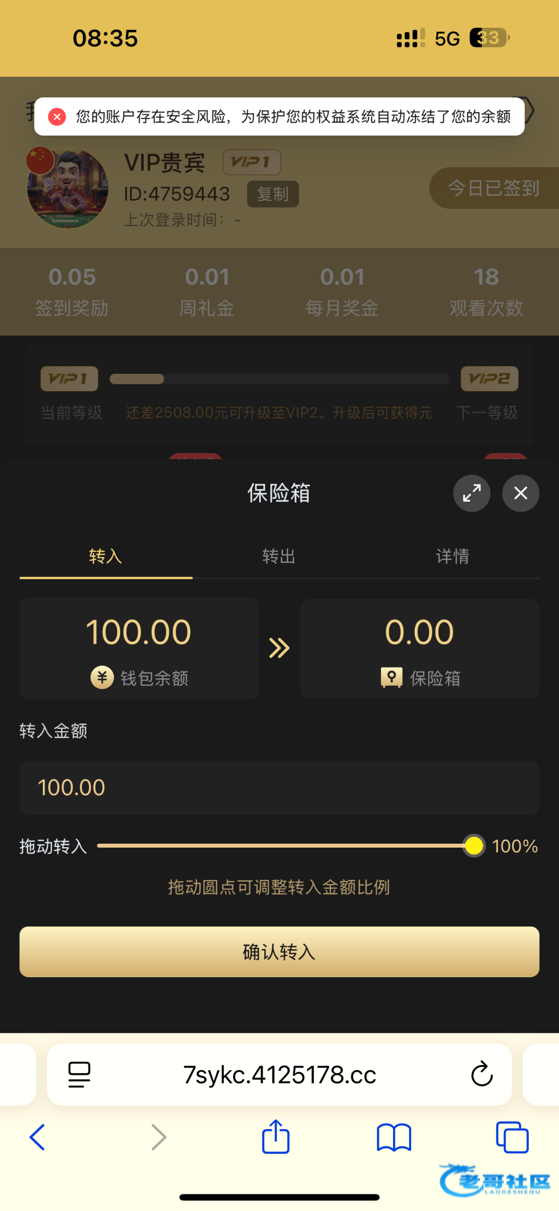 申请提现彩金 ID