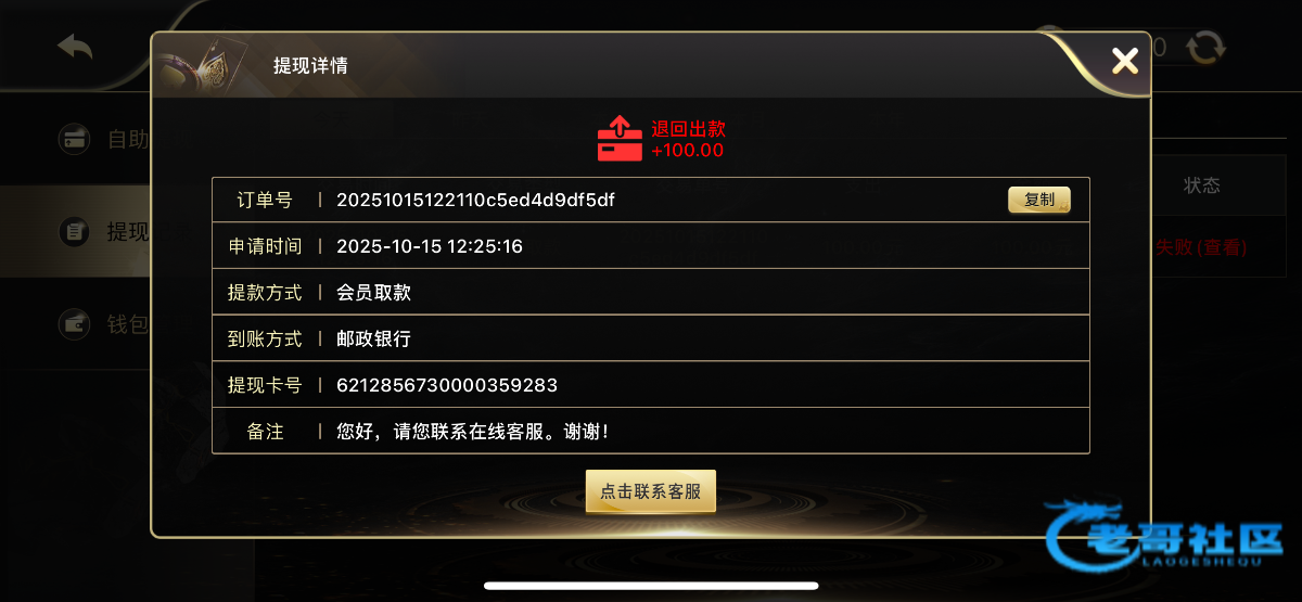 申请提现彩金ID