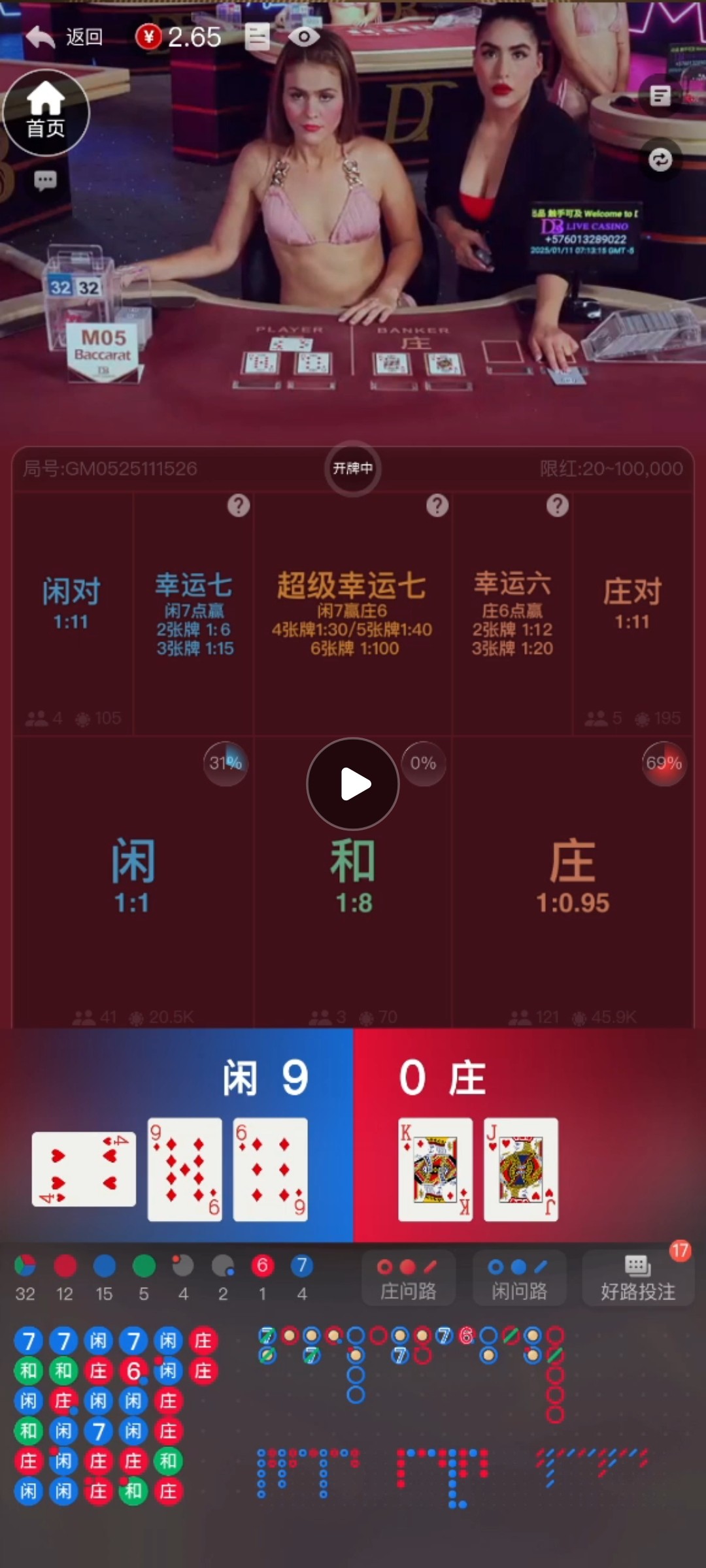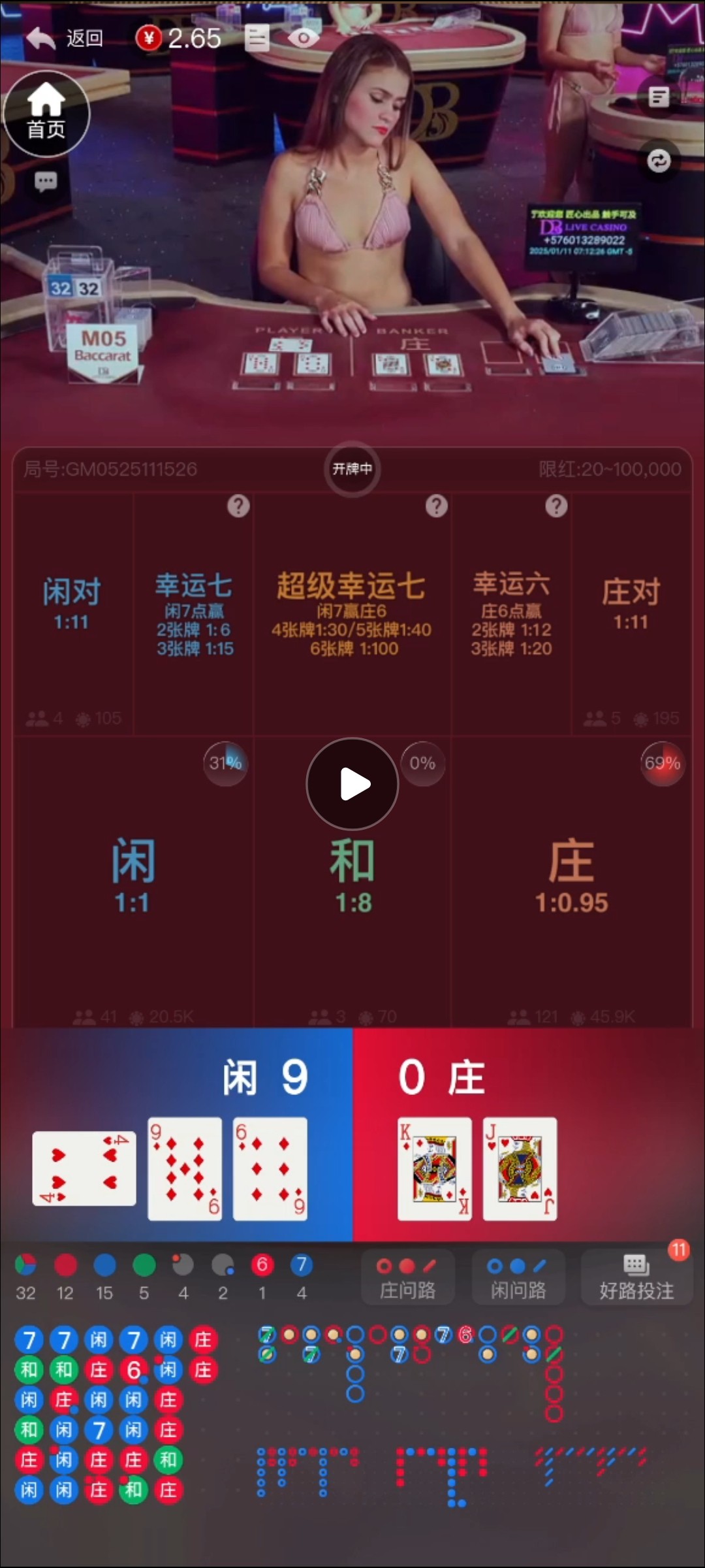 m171603226 ▶ 巴黎世家 这荷官眼花了吧,庄4闲5的情况下闲补到花牌直接赢了啊 2025-1-12