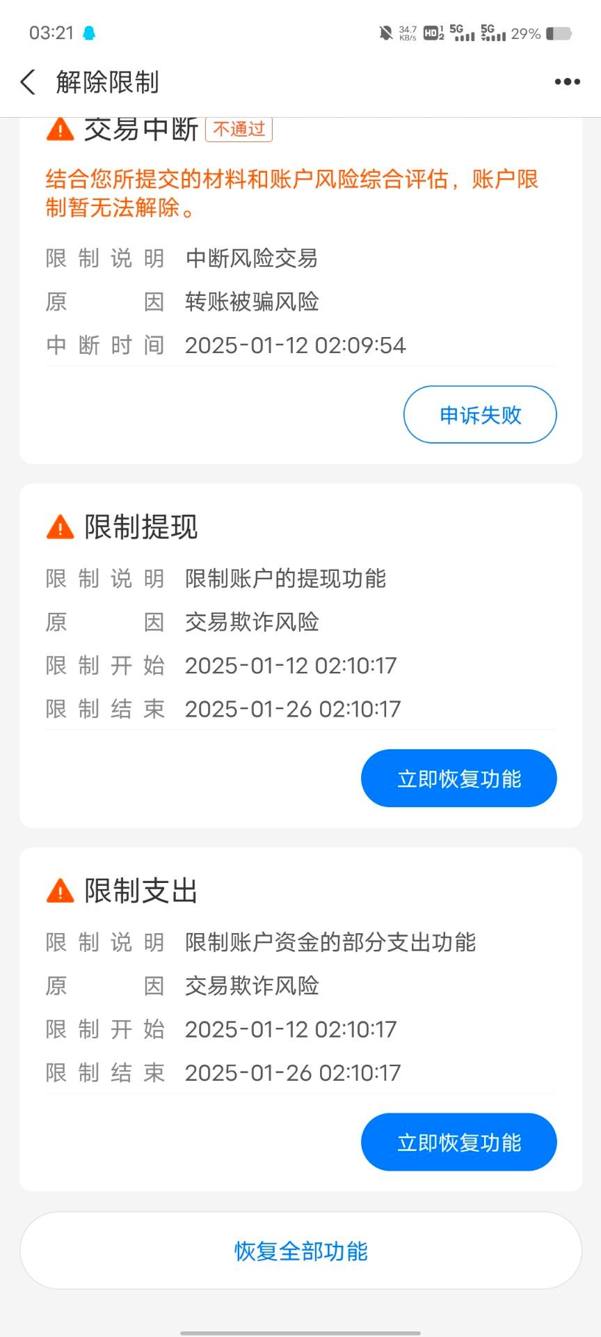 大半夜肯定风控,有时候不是被举报,是系统风控
