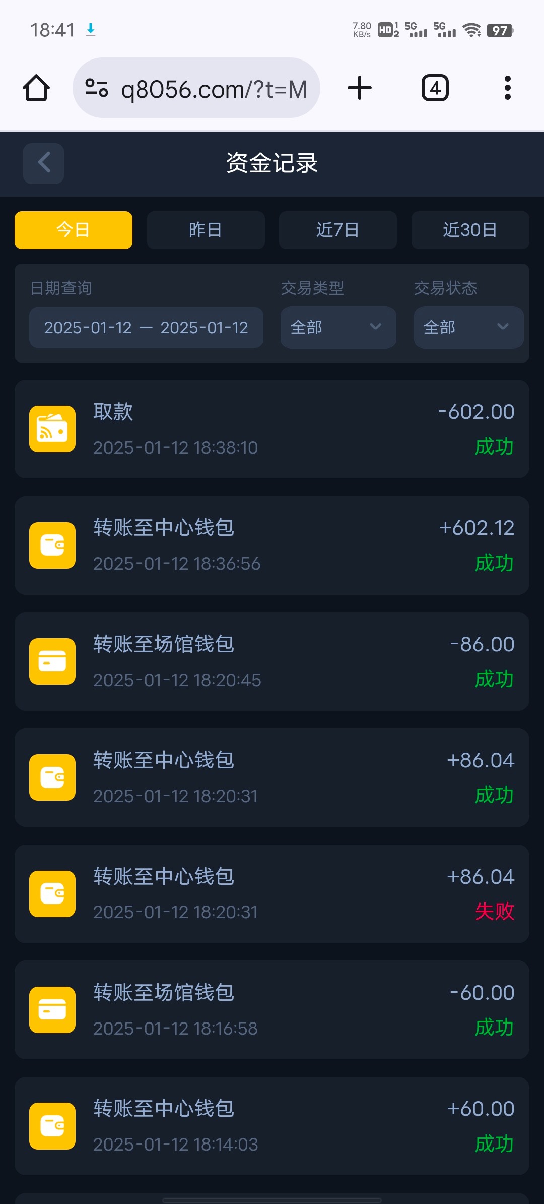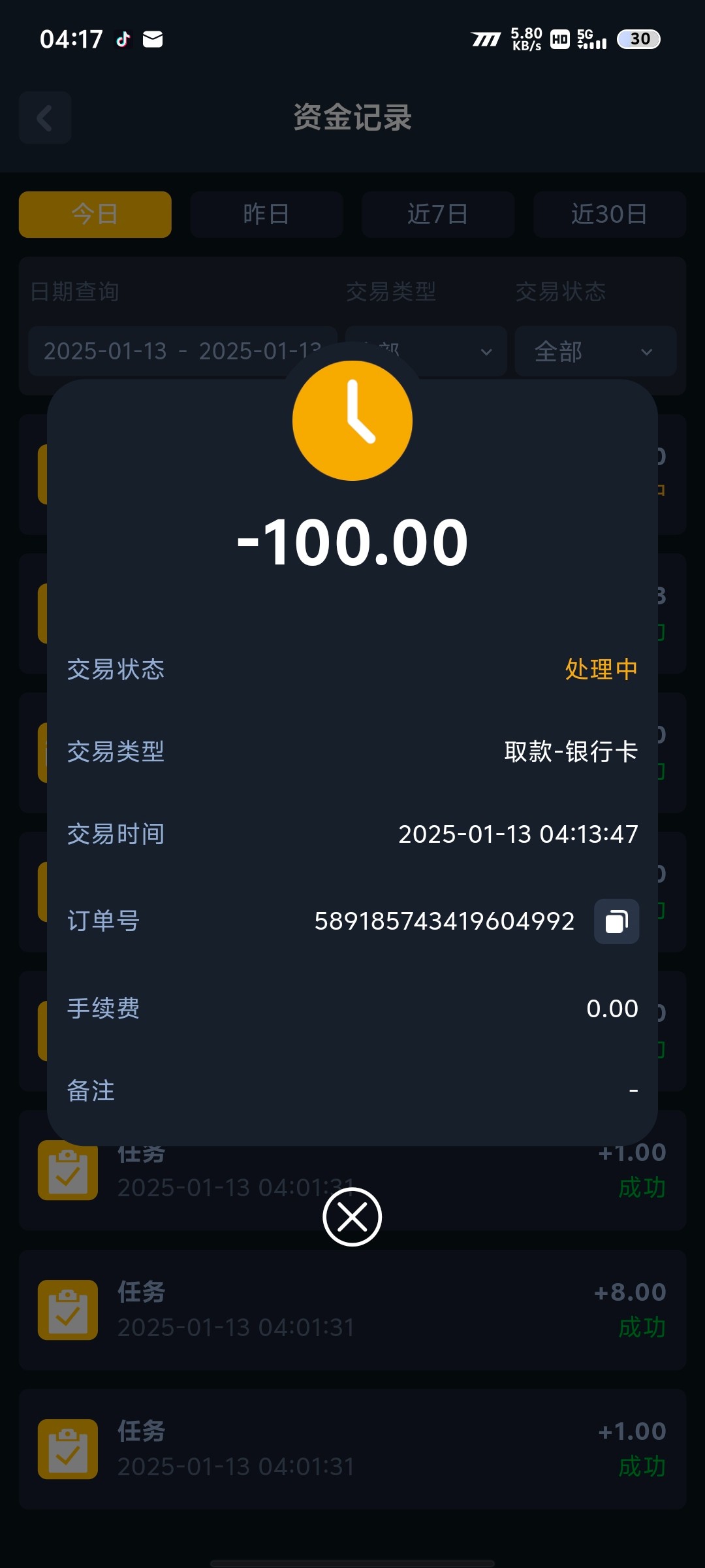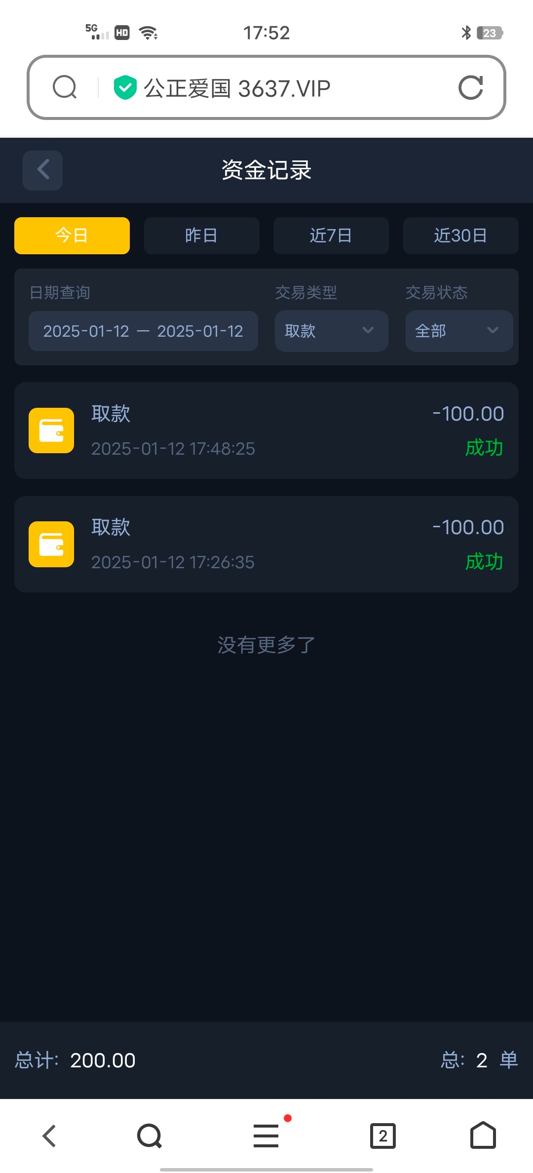 上次提了100,没充值过 这次又提了100,不知道能不能到账了