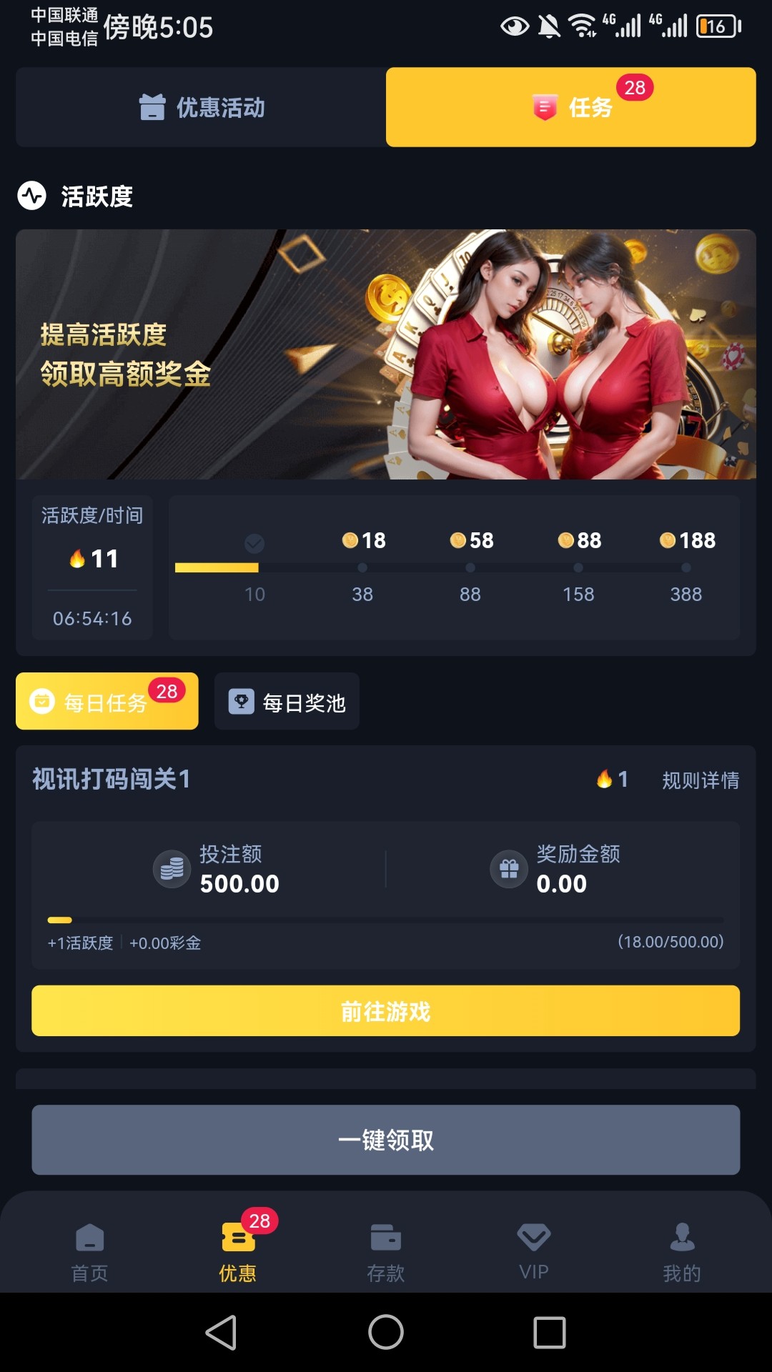 优惠里面有首次存款取款,领完加活跃给了18 地址 3637.vip