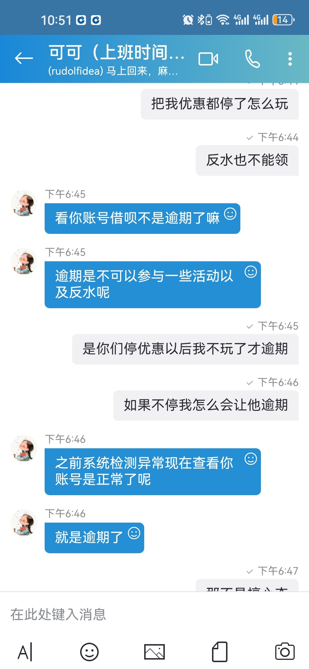 860钱能女神客服主动找我说我停了半年优惠的账号恢复了还给我送了1888,借呗逾期还了也能马上借出来。这个1888领过2次了。
