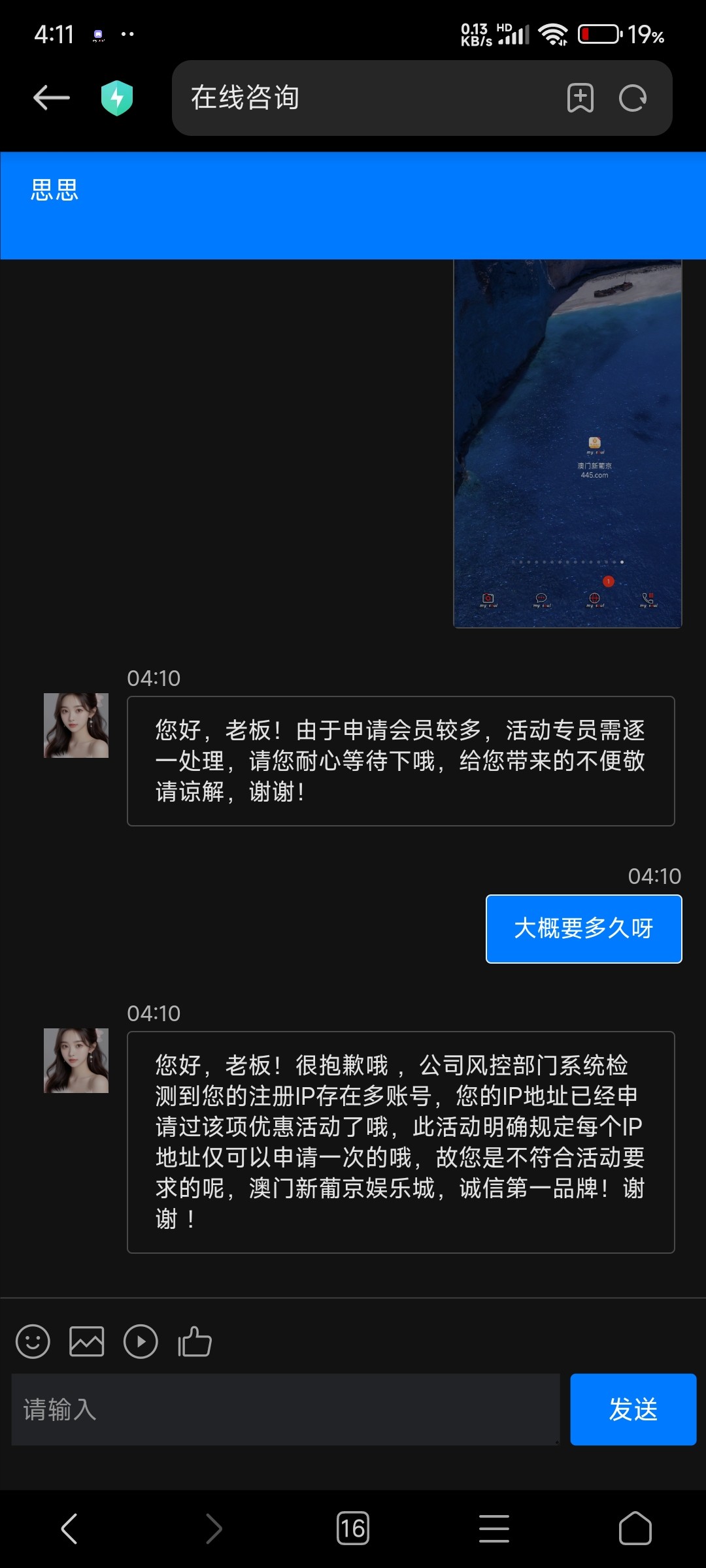 2您好,老板!很抱歉,经查询,您使用网页进行注册,故不符合申请该活动的呢,该活动说明为您下载【澳門新葡京】手机APP,注册账号并绑定银行卡后进行申请即可哦,活动更多详情请您前往活动大厅了解,谢谢❀❀!