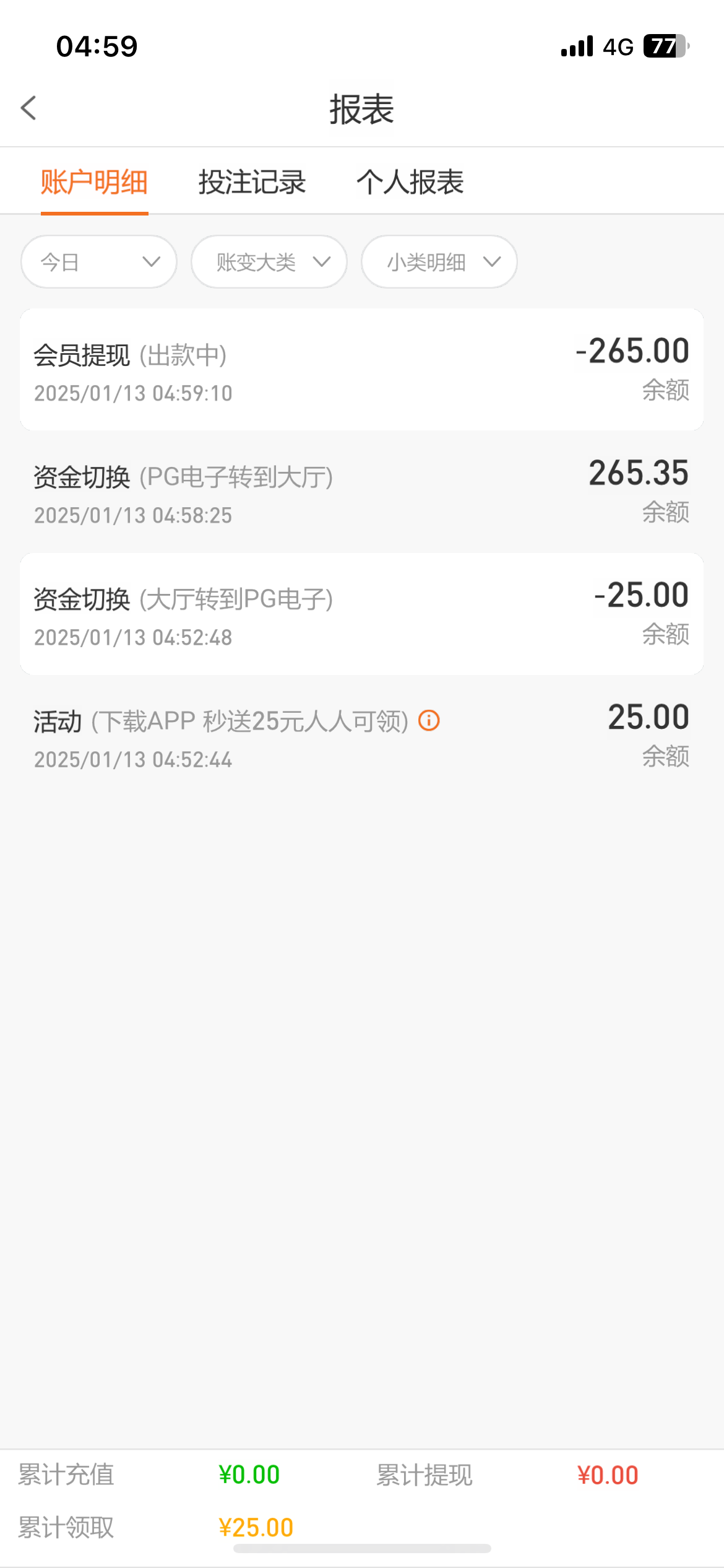 昨天申请的注册送25,没打出来,今天上号有88,没充值过,提100不知道能出不